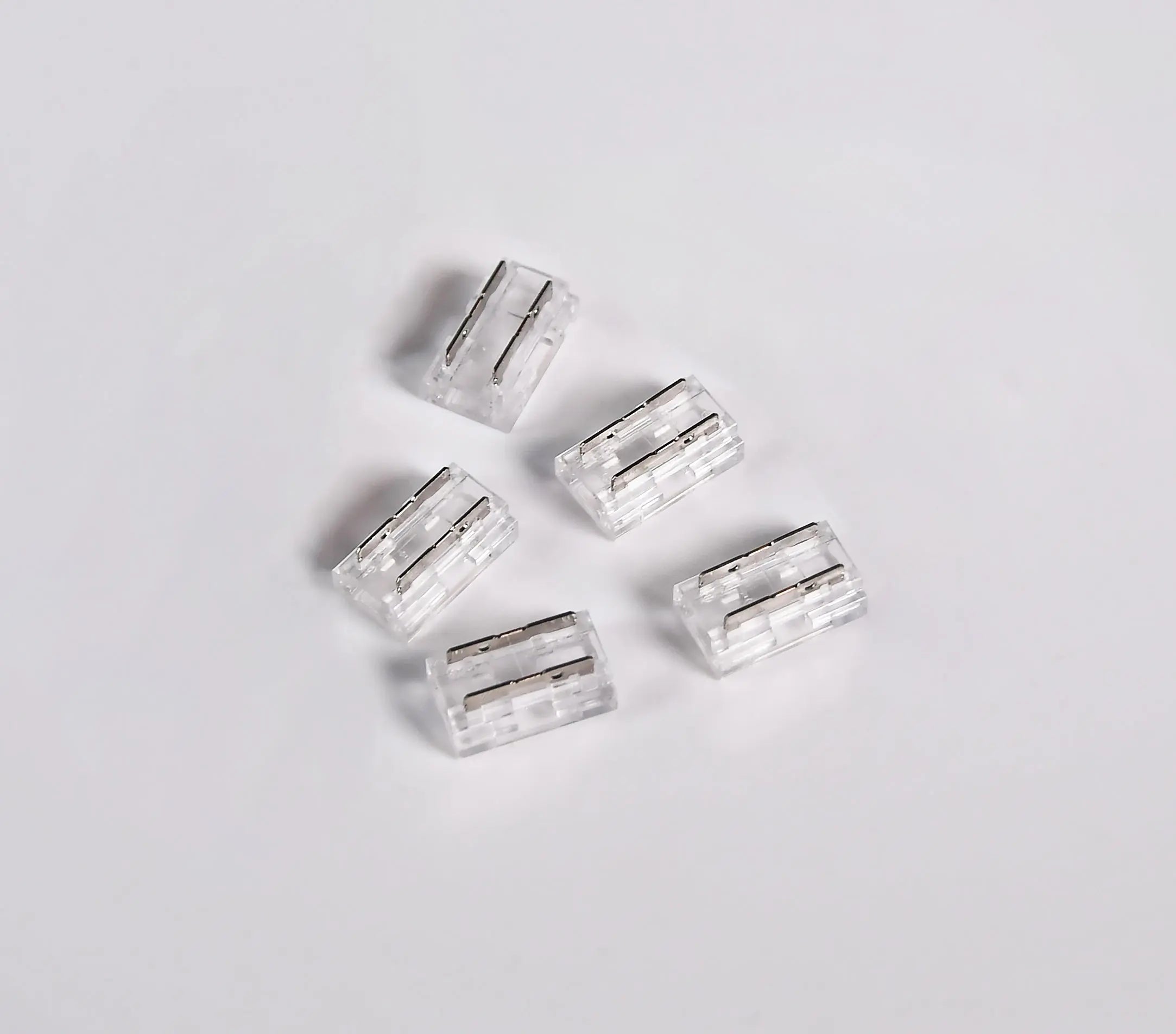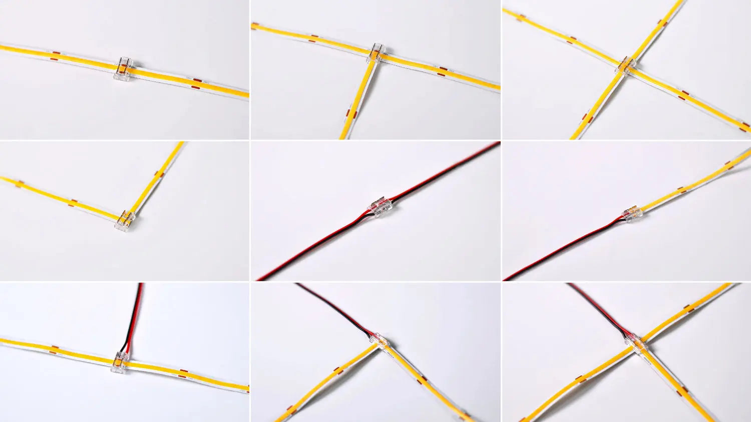 Transparent COB tape connectors for a seamless installation. Connect your tape together in multiple configurations and then crimp with pliers to ensure a gap free professional look. No need for soldering!