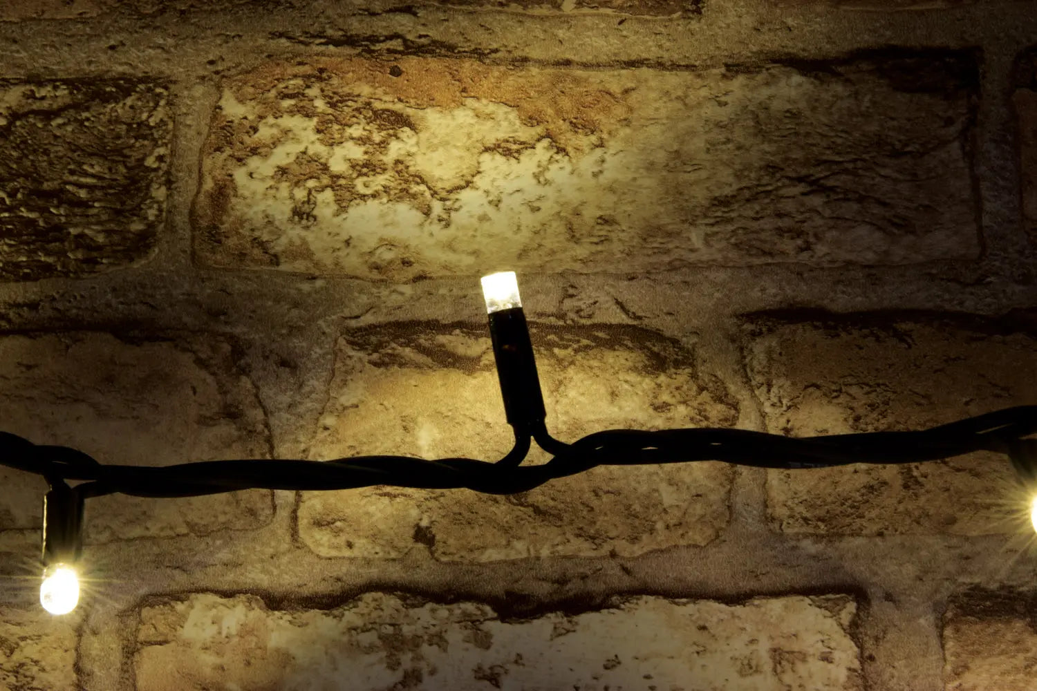 High quality outdoor LED string lights with heavy duty black cable. You may extend the cable from the mains power supply by using our 5m power extension lead. The high quality LEDs have a long lifespan and are energy efficient making them ideal for decorating homes, shops etc.