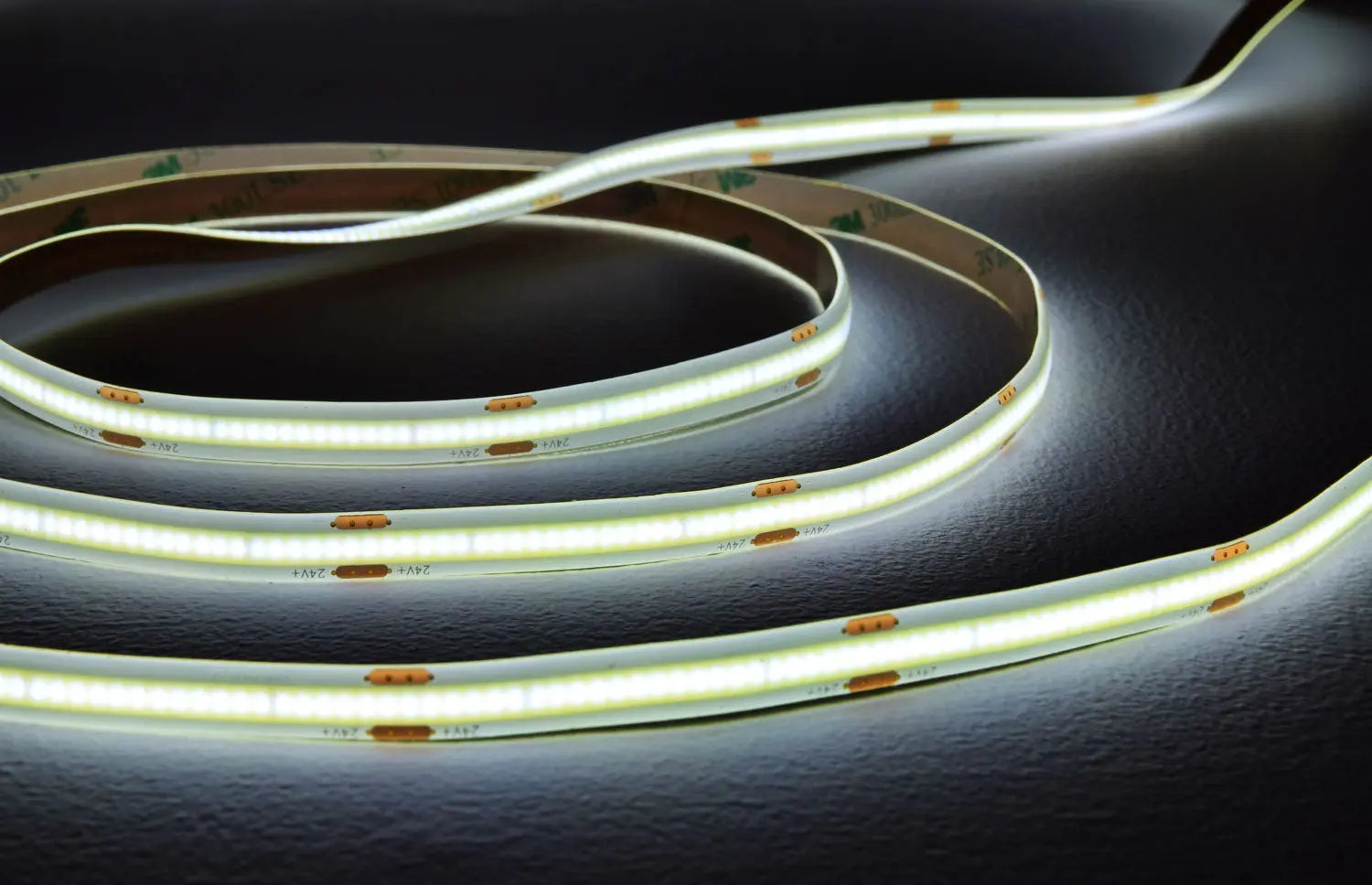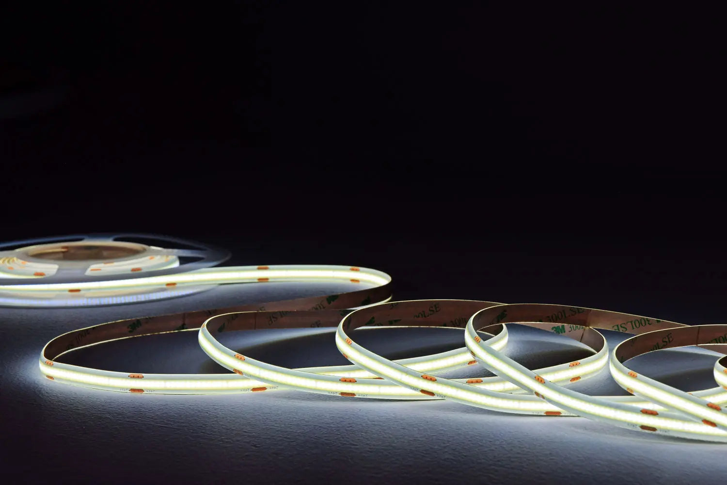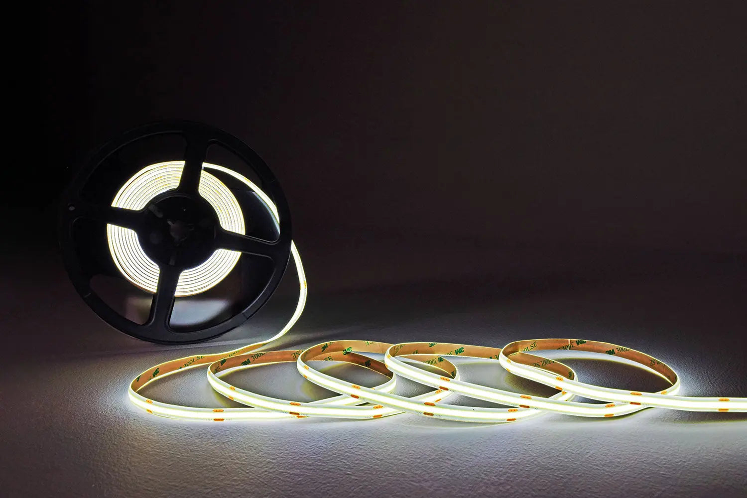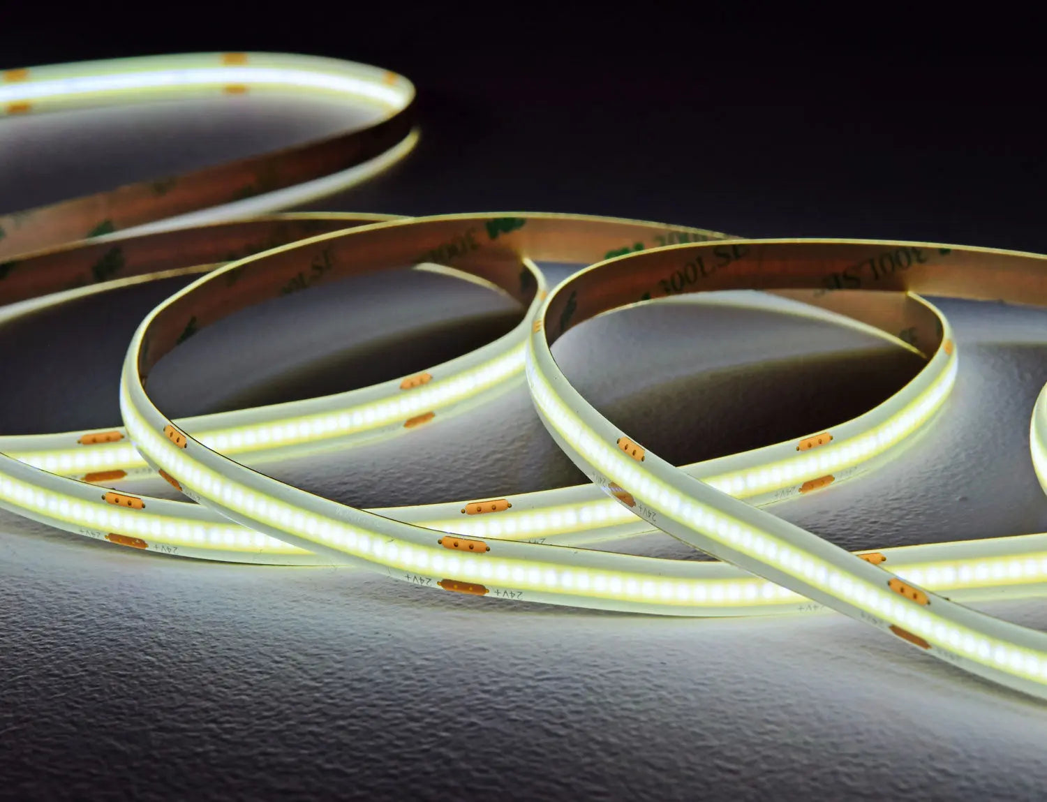 DIY Kit including 5m Seamless COB LED tape, power supply with UK adaptor. The tape is quick and easy to cut to size and install, with easy-peel self-adhesive backing. Low-voltage operation (24Vdc) with a seamless COB LED effect that eliminates ‘spots’ for an even distribution of light.