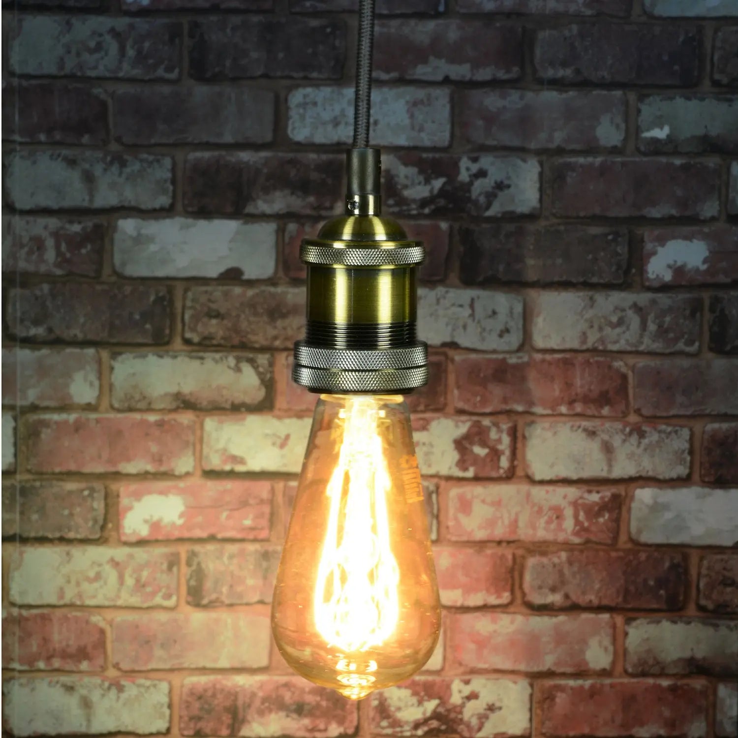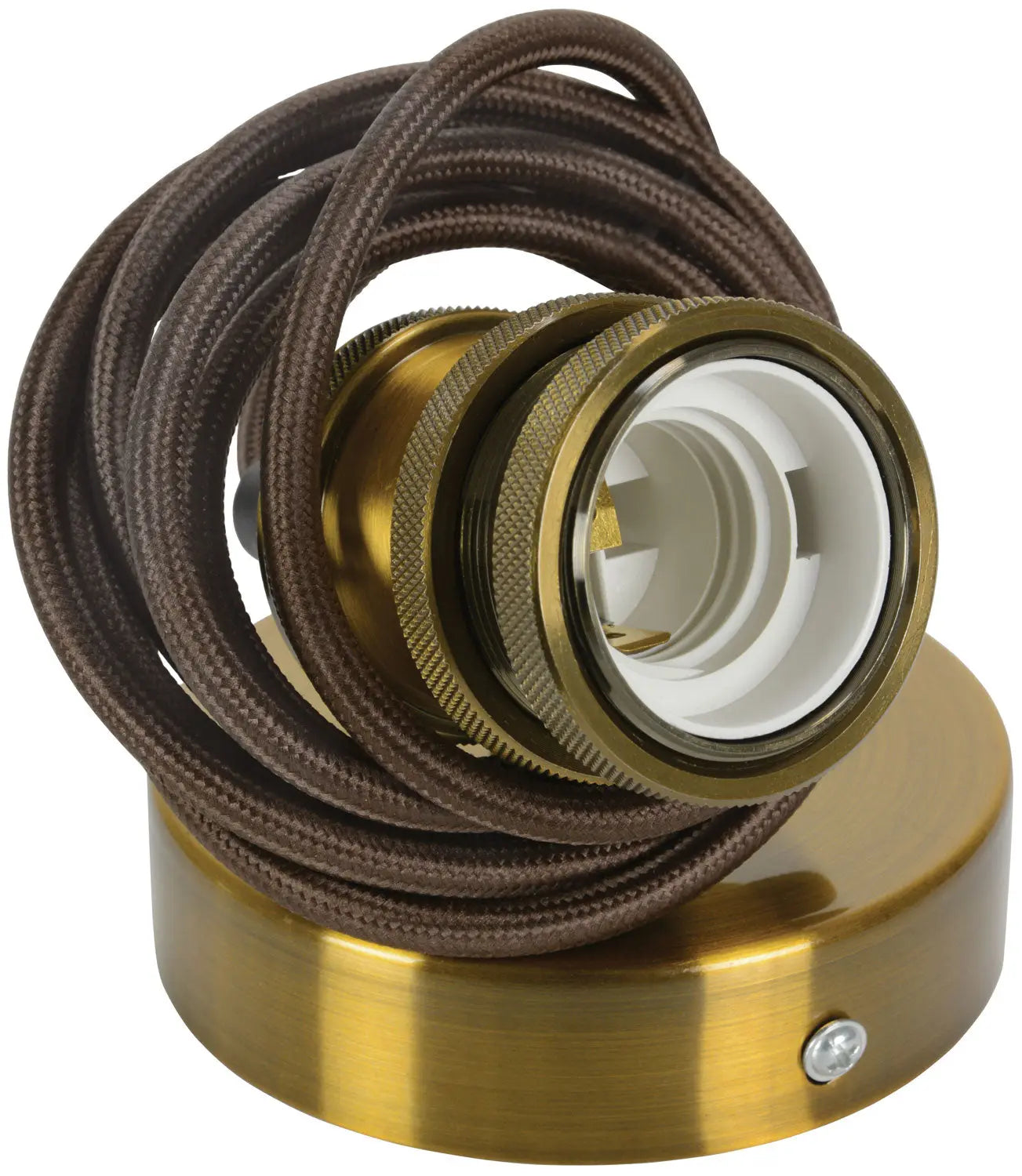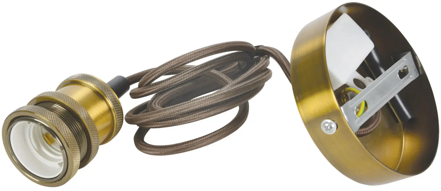 Decorative cord sets comprising an E27 lamp holder with plated aluminium cover, plated steel ceiling rose with internal terminal block and a 1.8m nylon braided mains cable, which can be cut to length and re-connected in the ceiling rose as required. Install with vintage style LED filament lamps to create a retro-style lighting scheme.