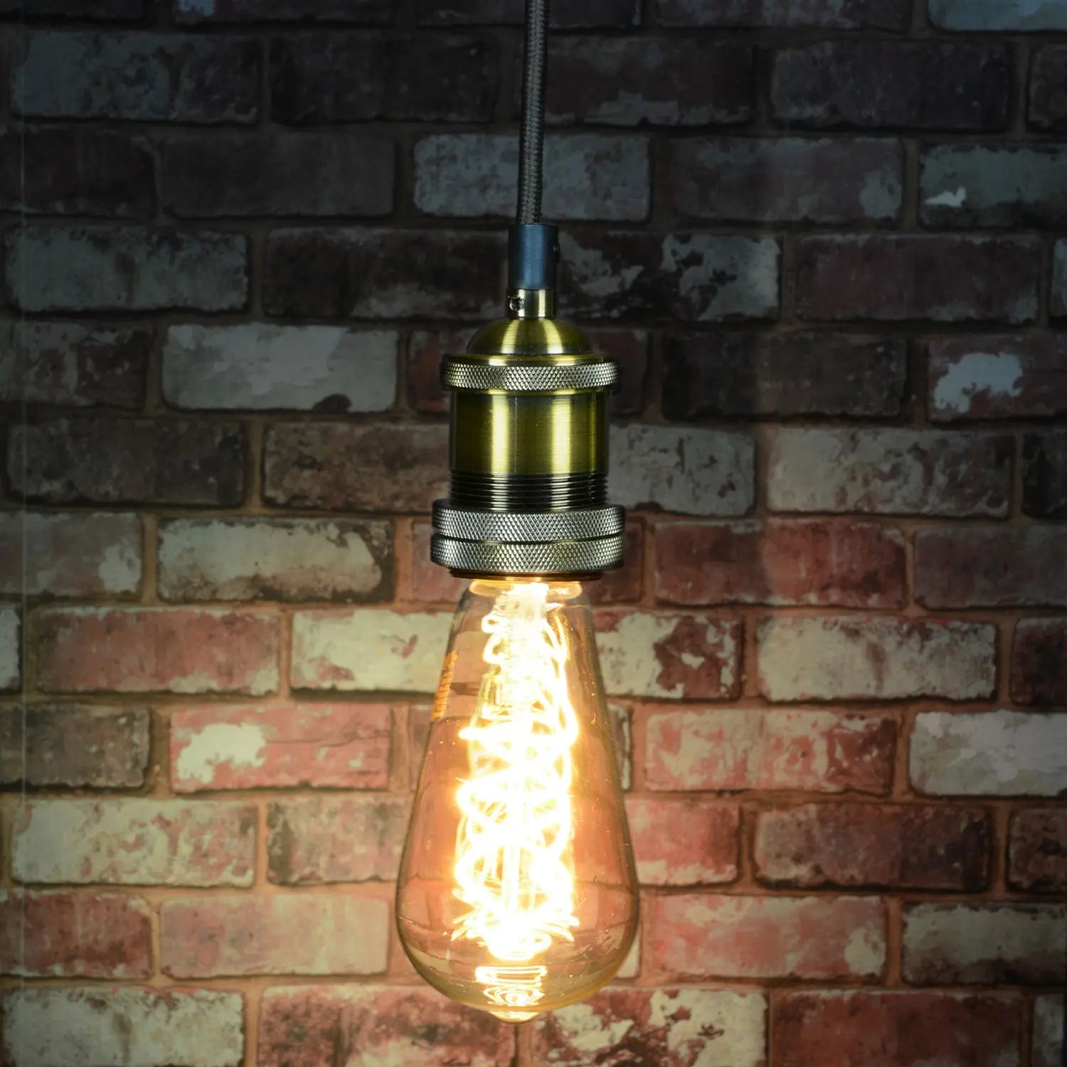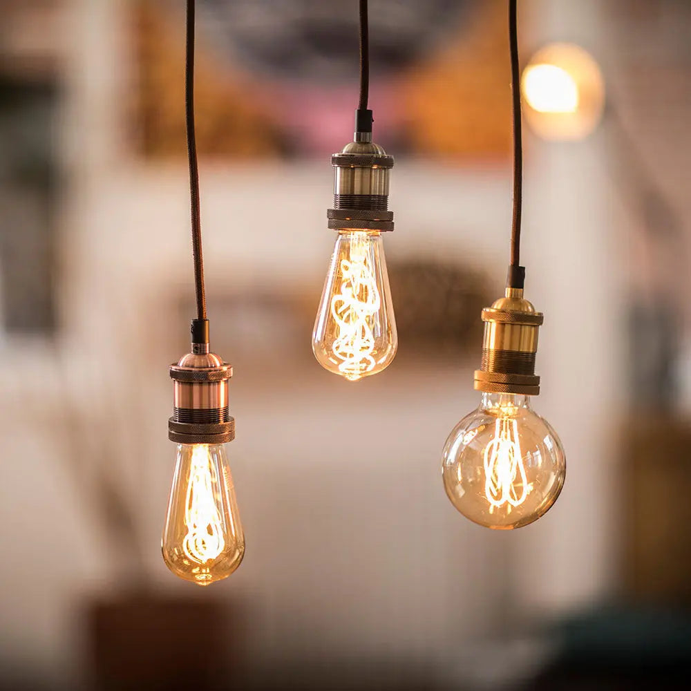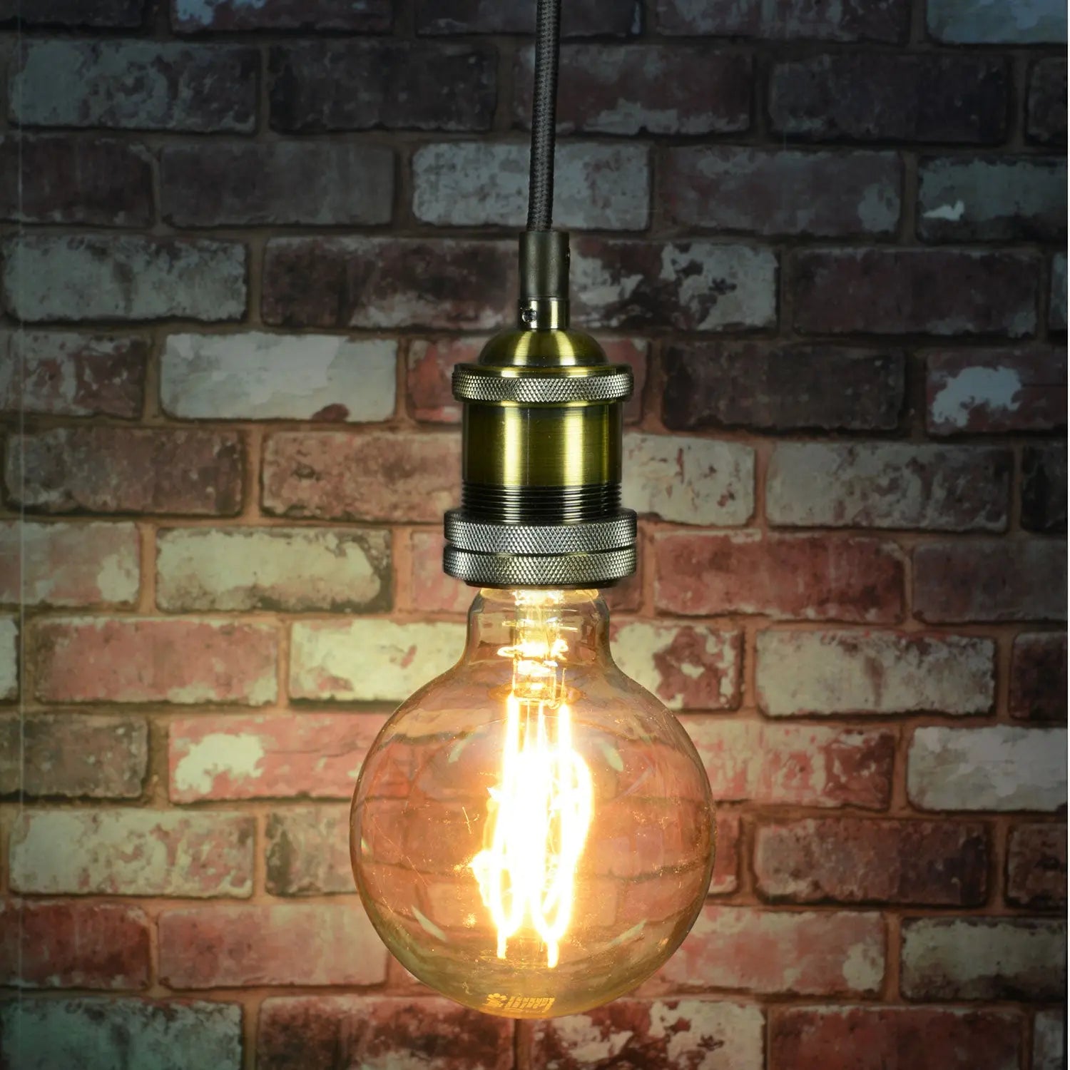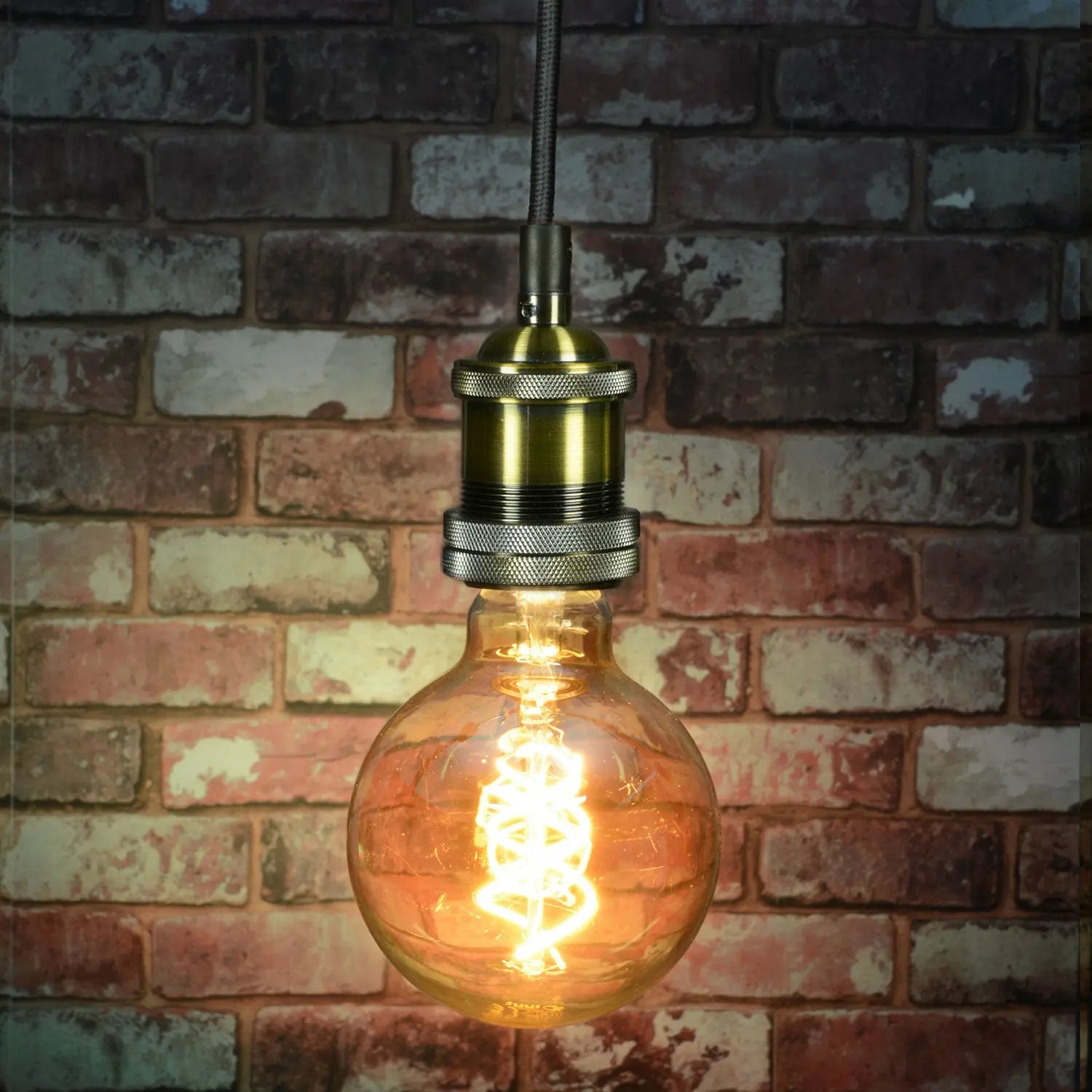 Decorative cord sets comprising an E27 lamp holder with plated aluminium cover, plated steel ceiling rose with internal terminal block and a 1.8m nylon braided mains cable, which can be cut to length and re-connected in the ceiling rose as required. Install with vintage style LED filament lamps to create a retro-style lighting scheme.