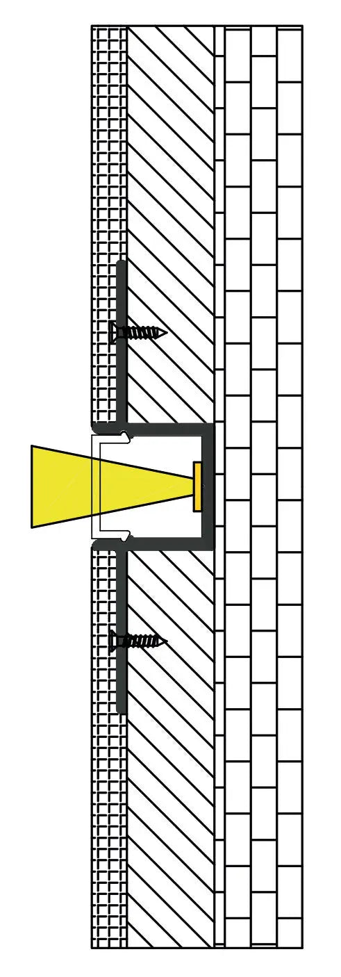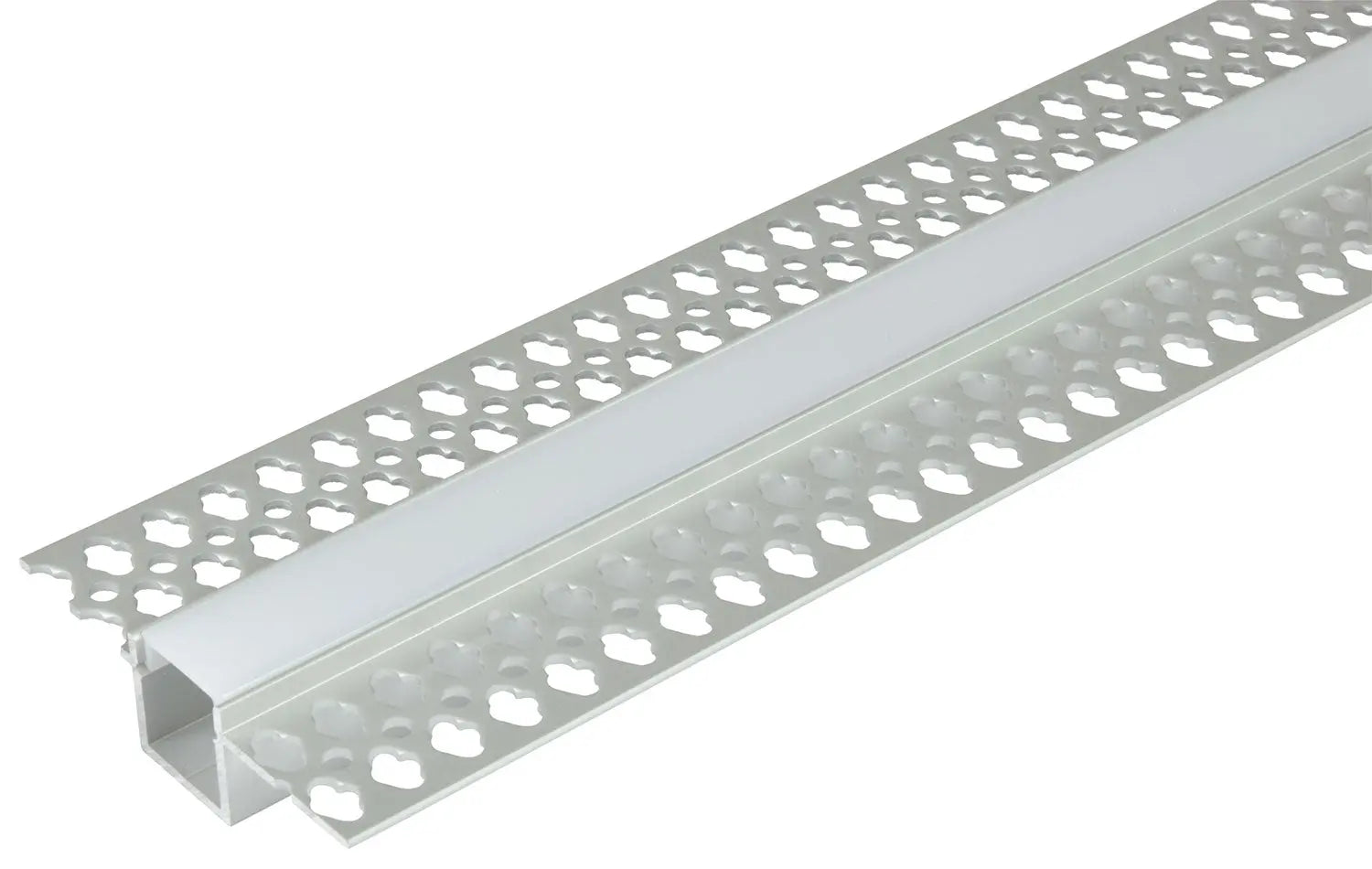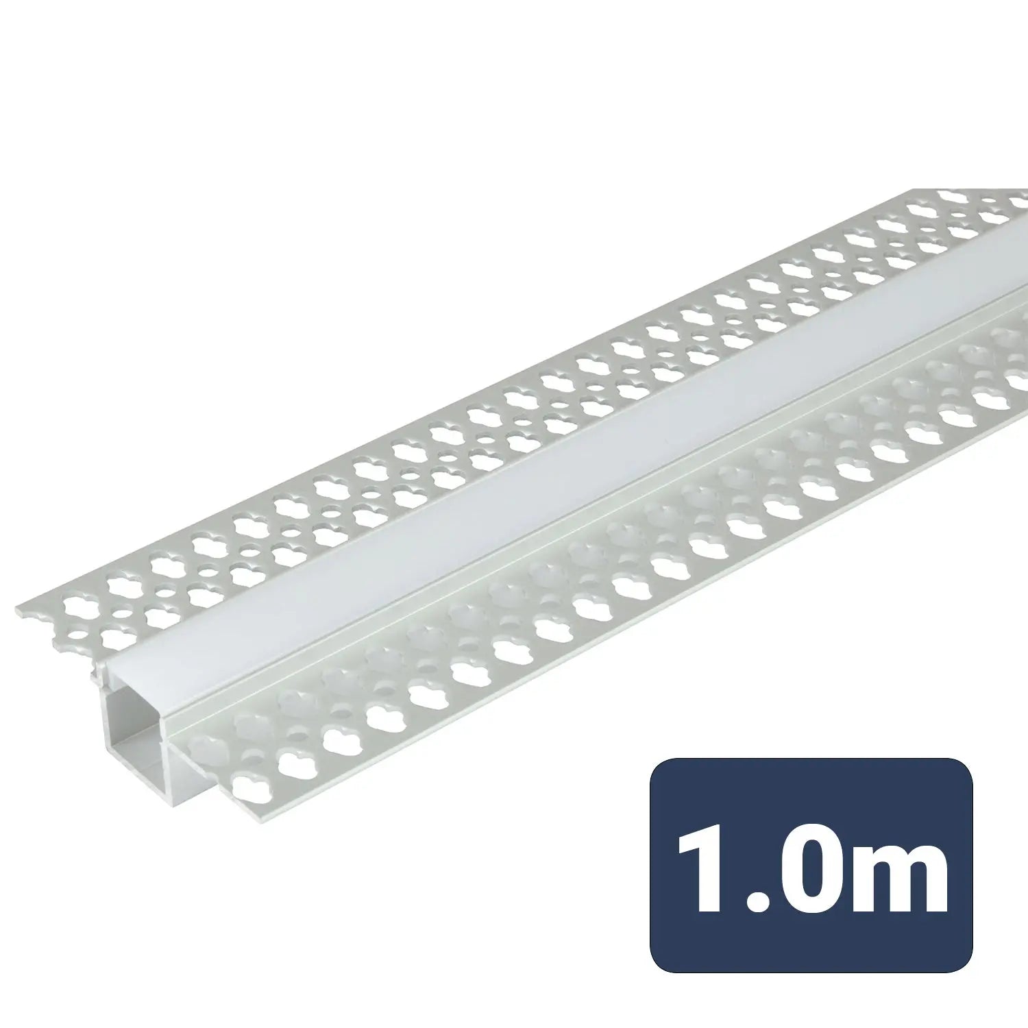 Plaster-in LED Tape Profiles offer a premium finish for those looking to build LED lights into a more permanent fixture. The profiles sink perfectly into the surface creating a seamless modern look. This flush mounted profile requires 1 piece of LED tape measuring 8-12.5mm and is supplied with a white diffuser to give an ambient glow.