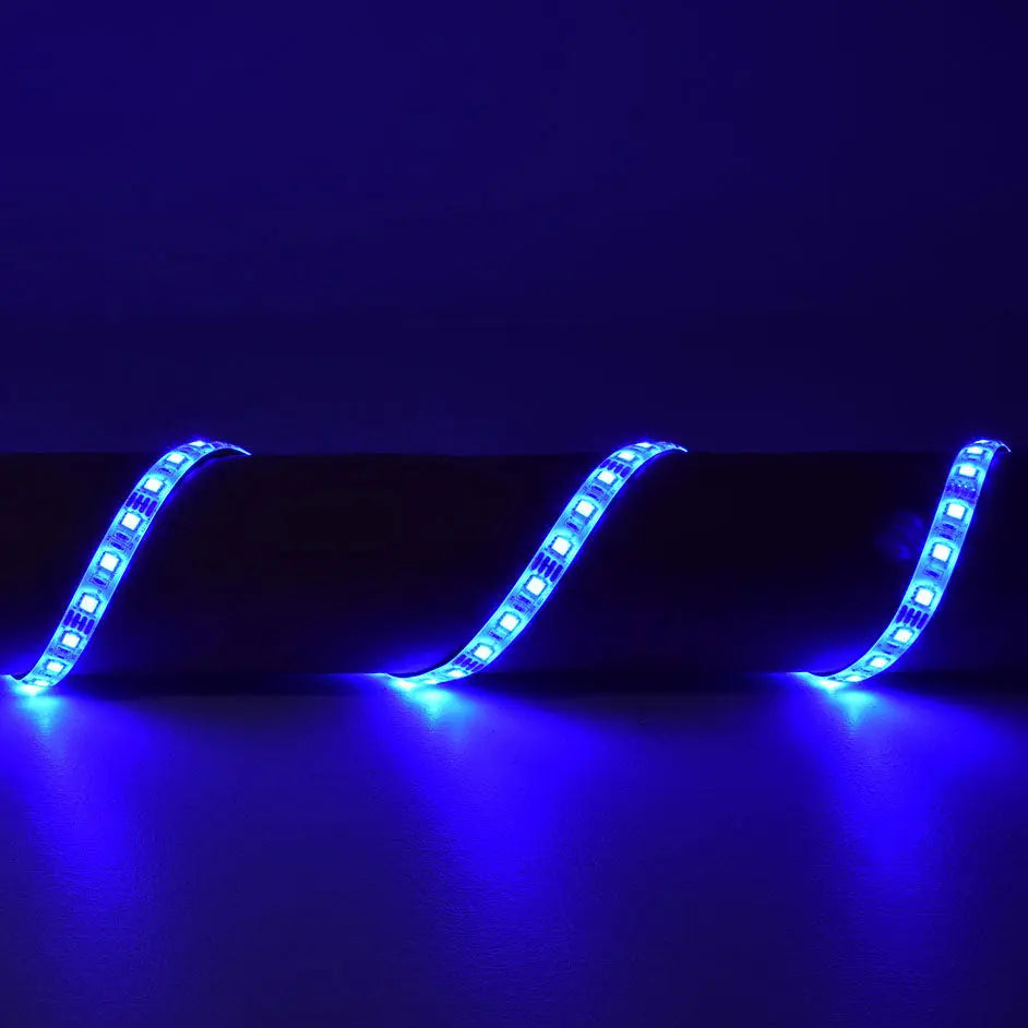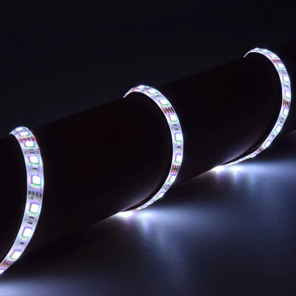 Retail ready packaged RGB LED tape together with a mains power adaptor, IR controller and connection accessories. The tape has a transparent coating to provide weatherproof protection and can be cut to length as required. Low voltage 12Vdc inline power supply. Allowing for the option of integrating into a fixed installation, which provides a discrete power solution. Self adhesive backing allows for quick and easy installation in the home, motor home, or vehicles.