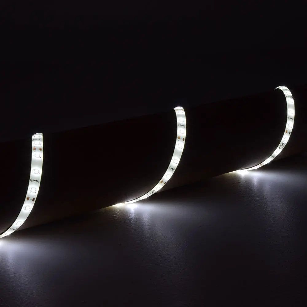 DIY kit including 5m LED tape, power supply with UK adaptor and connectors. The tape is quick and easy to cut to size and install, with easy-peel self-adhesive backing. Low-voltage operation (12Vdc) and a clear, protective IP65-rated waterproof coating make it suitable for kitchens, bathrooms, vehicles and throughout the home. Supplied in a retail-ready colour box.