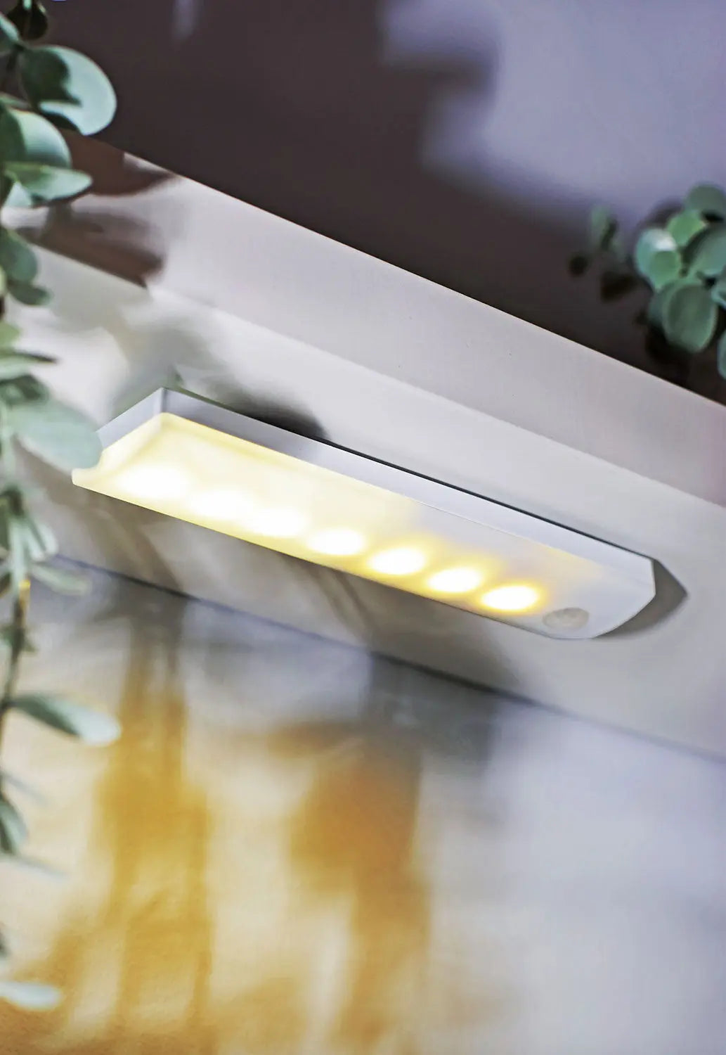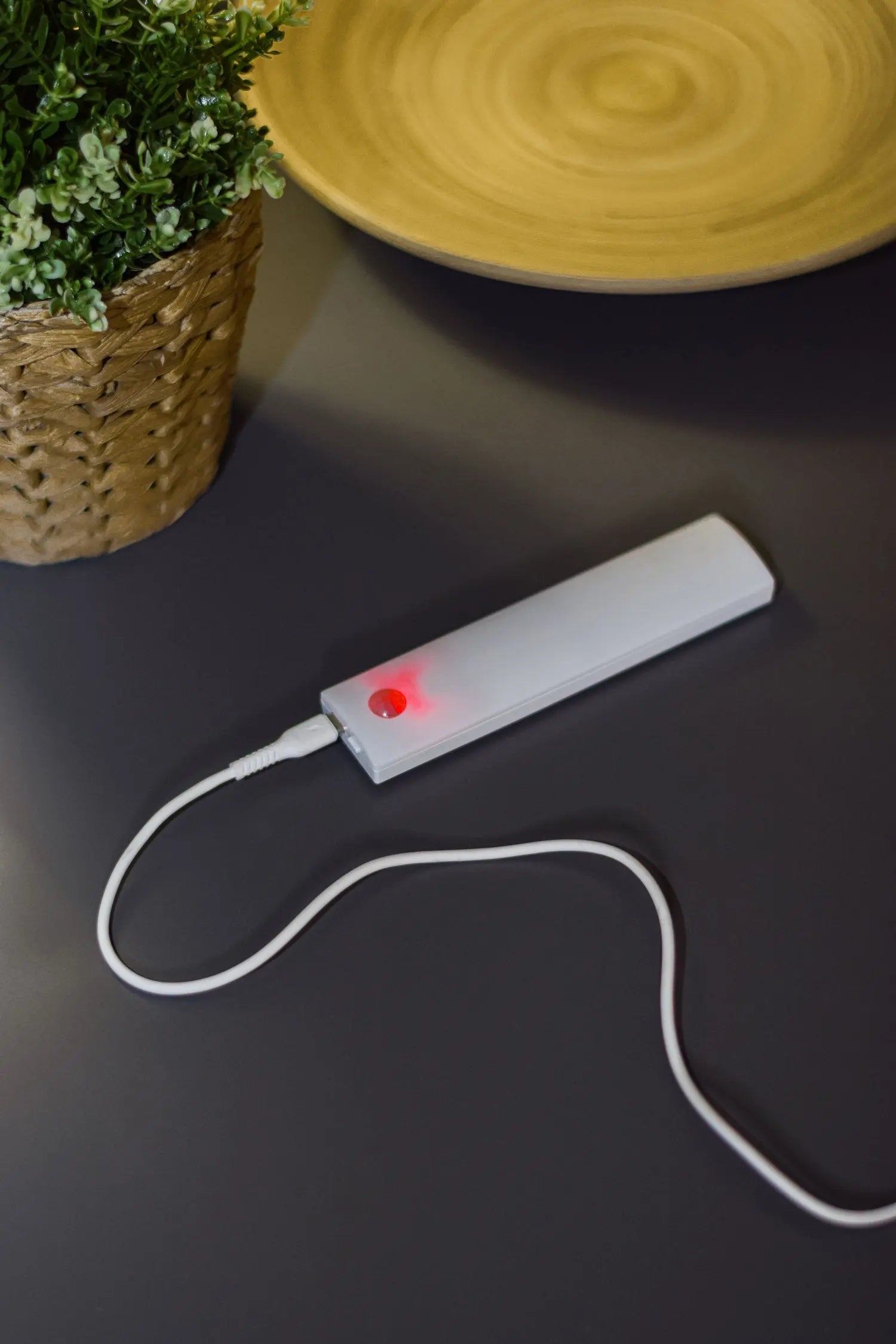 LED Strip Light with Passive Infra Red (PIR) sensor and a magnetic base for illuminating low light areas with a minimum of installation time. Featuring a rechargeable battery via USB C, this light is suitable for wardrobes, cabinets, drawers, bedrooms, stairs or corridors.