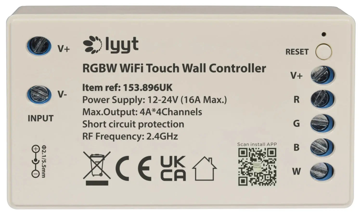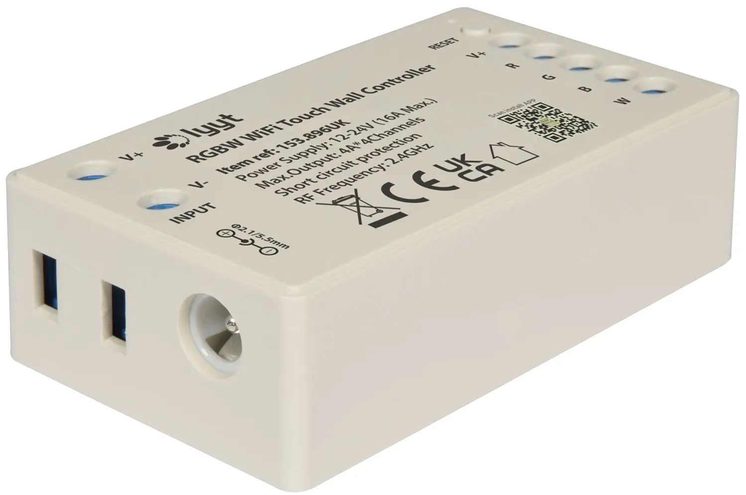 Recommended for use with 1 x 5m reel of Lyyt 12V RGB LED Tape 156.720UK or 2 x 5m reels max. of Lyyt 24V COB Strip 156.667UK, or 2 x 5m reels max. Lyyt 24V RGBW LED Tape 156.667UK, or 2 x reels max. Lyyt 24V RGB LED Tape 156.770UK