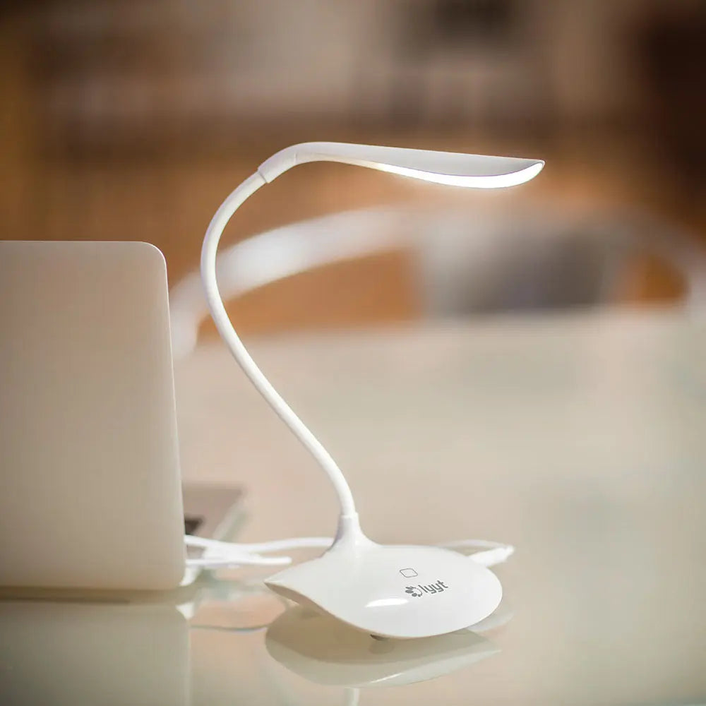 Stylish, dimmable touch sensor LED lamp with 3 brightness settings and a soothing nightlight built into the base. Its flexible goose-neck stem directs the light into any position and it can be powered by either USB or batteries making it ideal for use at home or on your travels.