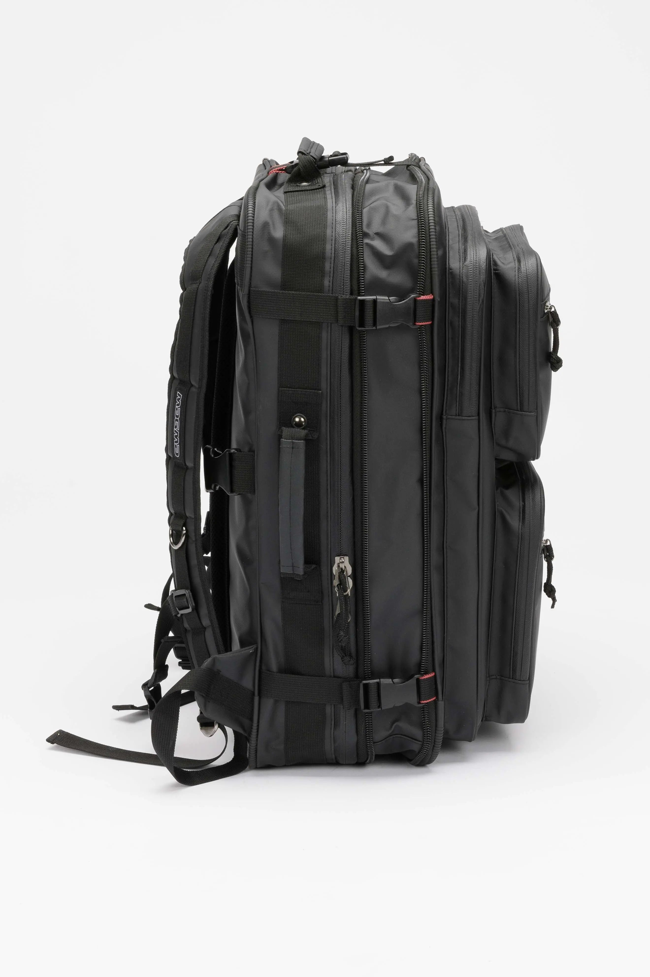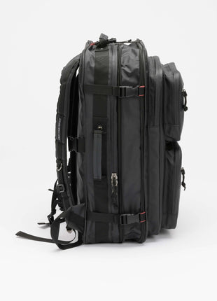 The new RIOT DJ-BACKPACK XL is a high-end extremely rugged-built backpack designed for the heavy-travelling Pro-DJ. It comfortably holds any digital gear from Traktor Kontrol S4 and similar sized controllers to battle-mixers such as Rane Sixty-Two Pioneer DJM-T1 or Traktor Kontrol Z2 along with a laptop and accessories. Constructed entirely from hardwearing PVC Tarpaulin its outer shell and all zippers are fully waterproof which ensures your gear is protected even in the worst weather. Especially digital-DJs who need to have their gear well organised and protected for their gigs will appreciate the clever interior design and the unique features of the RIOT DJ-Backpack. The main compartment includes several removable dividers protection panels and foams which can be adjusted to fit different controller or mixer sizes. The featured Zip-Around-Expansion-System means the main compartments capacity can be doubled turning the RIOT DJ-Backpack into the ultimate versatile packing monster. This compartment can also be packed and unloaded in two different ways; in the DJ-booth-friendly stand-up position and the fully opened and unfolded position to gain easy and complete access. In addition it is equipped with a separate padded 17 laptop-compartment and two large front pockets with numerous mesh pouches that can store plenty of small items and personal belongings. Ergonomic s-curved backpack straps and the well-padded cushioning panel provide ultimate carrying comfort.