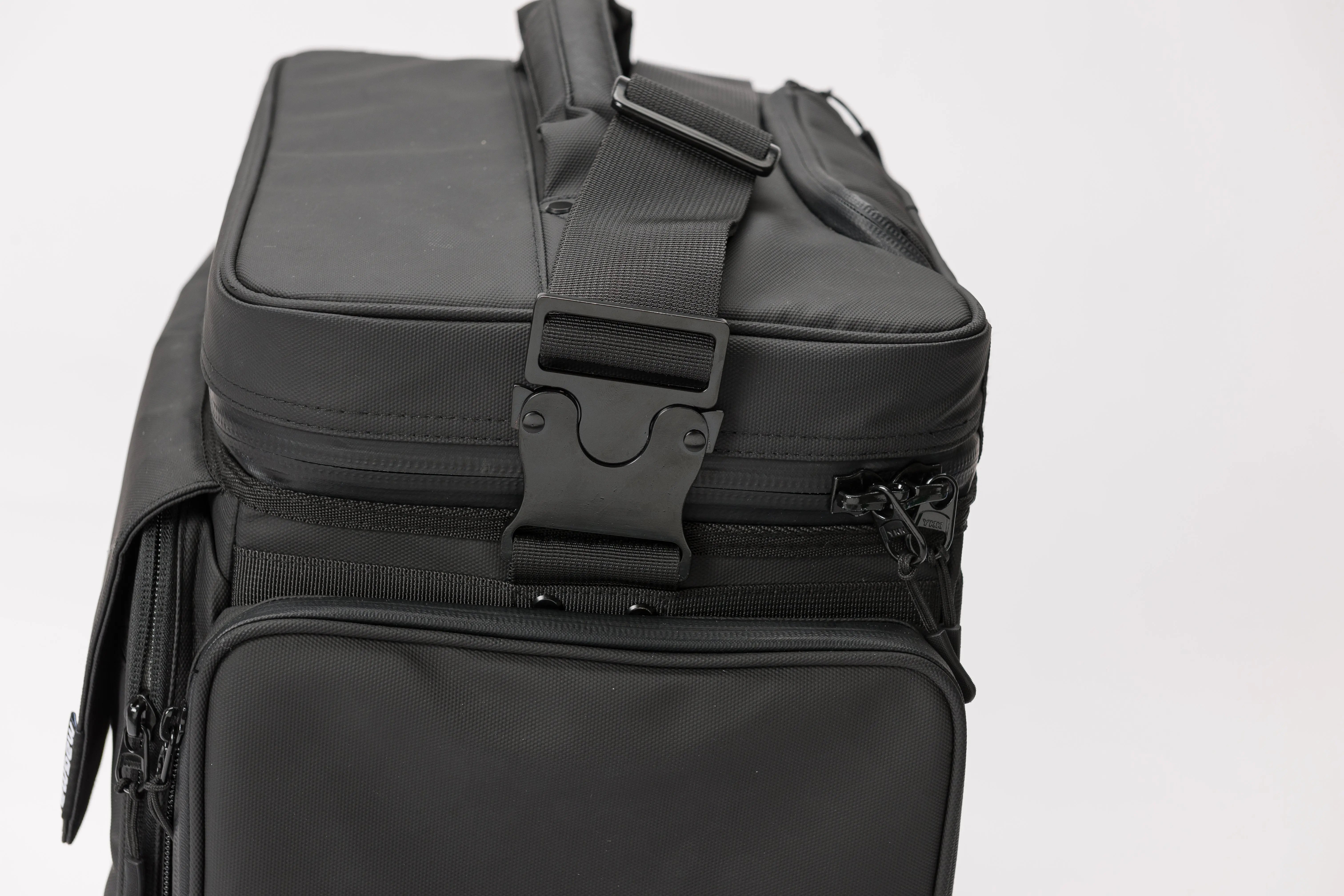 Carrying Options: Strong carry handle and detachable shoulder-strap.