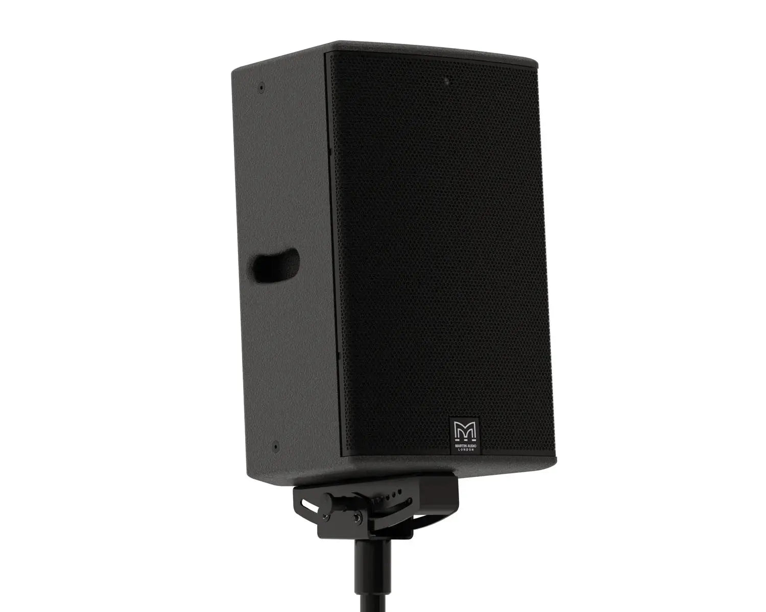 What are the mounting options? The speaker is incredibly flexible, featuring a top-hat for pole mounting and 15 x M8 inserts. These can be used with Martin Audio's wall, yoke, or universal brackets, allowing the speaker to be rigged at almost any angle.