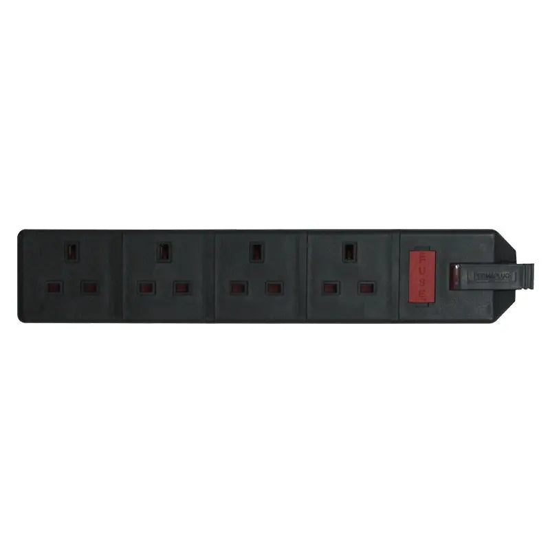 Masterplug 4 Gang 13A HD Mains Socket Black (ELS134B)