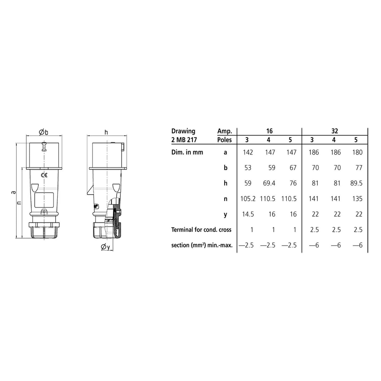 The AM-TOP series of IP44 CEE industrial cable connectors are robust reliable and easy to connect. Featuring open terminal screws all facing in the same direction the AM-TOP series of plugs are terminated quickly in the field. A rugged cable gland at the rear of the plug when tightened grips the cable and seals the gasket at the same time while the integral strain relief prevents cable kinking. Constructed from a heavy-duty Amaplast casing including nickel plated contacts with high heat resistant contact carriers offering excellent corrosion resistance. Ergonomically designed the AM-TOP series of industrial BS4343 plugs perform exceptionally well in the most demanding environments. 16A 240V 2P+E male configuration Screw terminals Single part blue body Cable gland and sealing Strain relief and protection against kinking IP44 rated