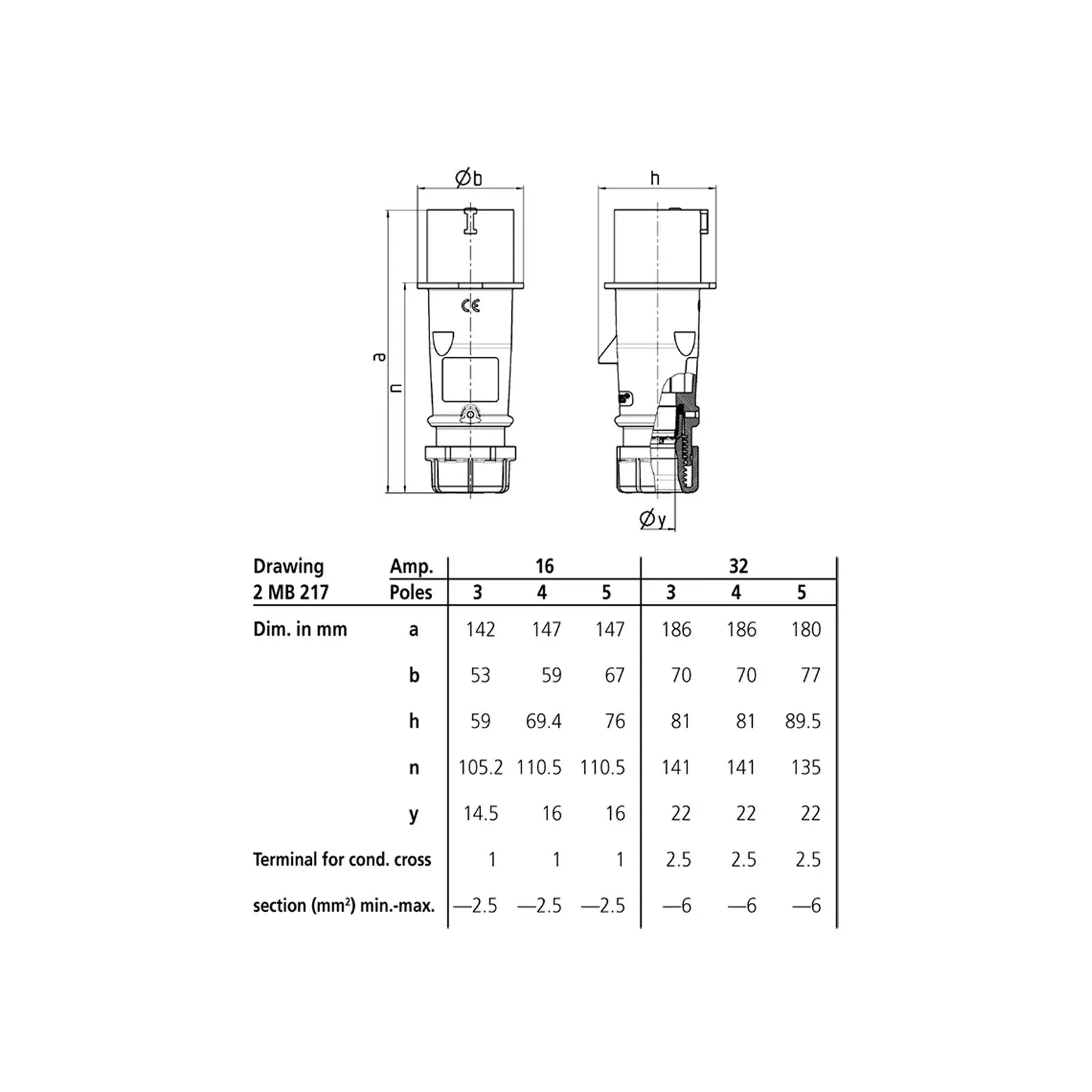 The AM-TOP series of IP44 CEE industrial cable connectors are robust reliable and easy to connect. Featuring open terminal screws all facing in the same direction the AM-TOP series of plugs are terminated quickly in the field. A rugged cable gland at the rear of the plug when tightened grips the cable and seals the gasket at the same time while the integral strain relief prevents cable kinking. Constructed from a heavy-duty Amaplast casing including nickel plated contacts with high heat resistant contact carriers offering excellent corrosion resistance. Ergonomically designed the AM-TOP series of industrial BS4343 plugs perform exceptionally well in the most demanding environments. 32A 240V 2P+E male configuration Screw terminals Single part yellow body Cable gland and sealing Strain relief and protection against kinking IP44 rated