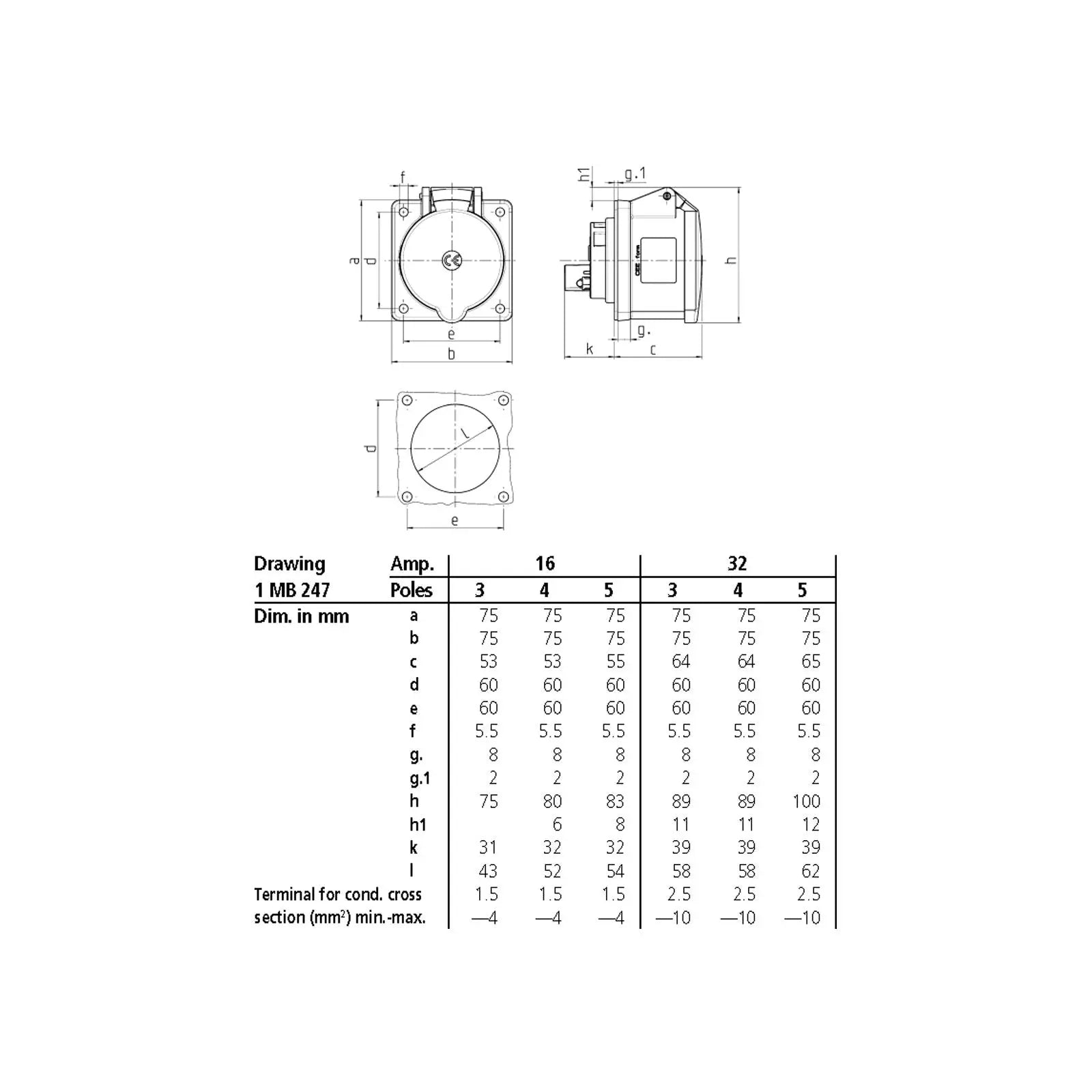 Mennekes 32A 110V 2P+E IP44 Panel Socket (1394/OEM)