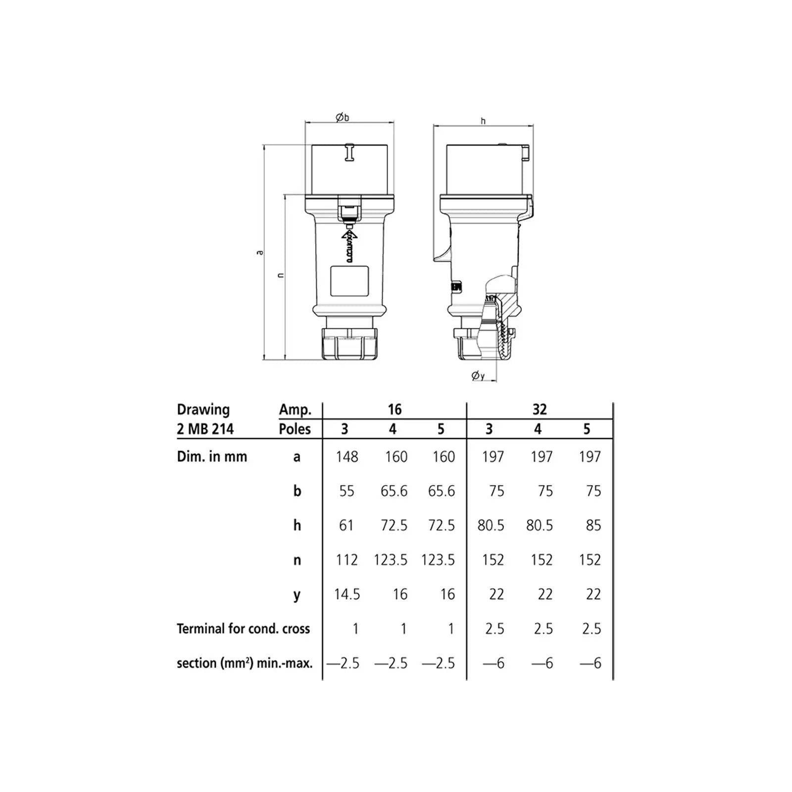 The PRO-TOP series of IP44 CEE industrial connectors are robust reliable and easy to connect. Featuring open terminal screws all facing in the same direction the PRO-TOP series of plugs are terminated quickly in the field. The PRO-TOP connectors feature a two piece chassis with front terminal housing and rear cover fitted with thread lock and safety slide the rugged cable gland at the rear of the plug when tightened grips the cable and seals the gasket at the same time while the integral strain relief prevents cable kinking. Constructed from a heavy-duty Amaplast casing including nickel plated contacts with high heat resistant contact carriers offering excellent corrosion resistance. 32A 240V 2P+E male configuration Screw terminals Frame terminals Highly heat resistant contact carrier Nickel plated contacts Cable gland and sealing Strain relief and protection against kinking IP44 Rated