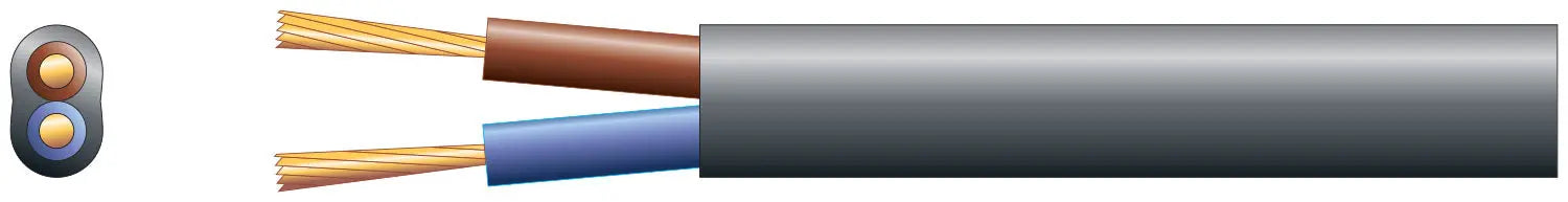 Mercury 2 core oval mains PVC, 2 x 24/0.2mm, 6A, Black, 100m