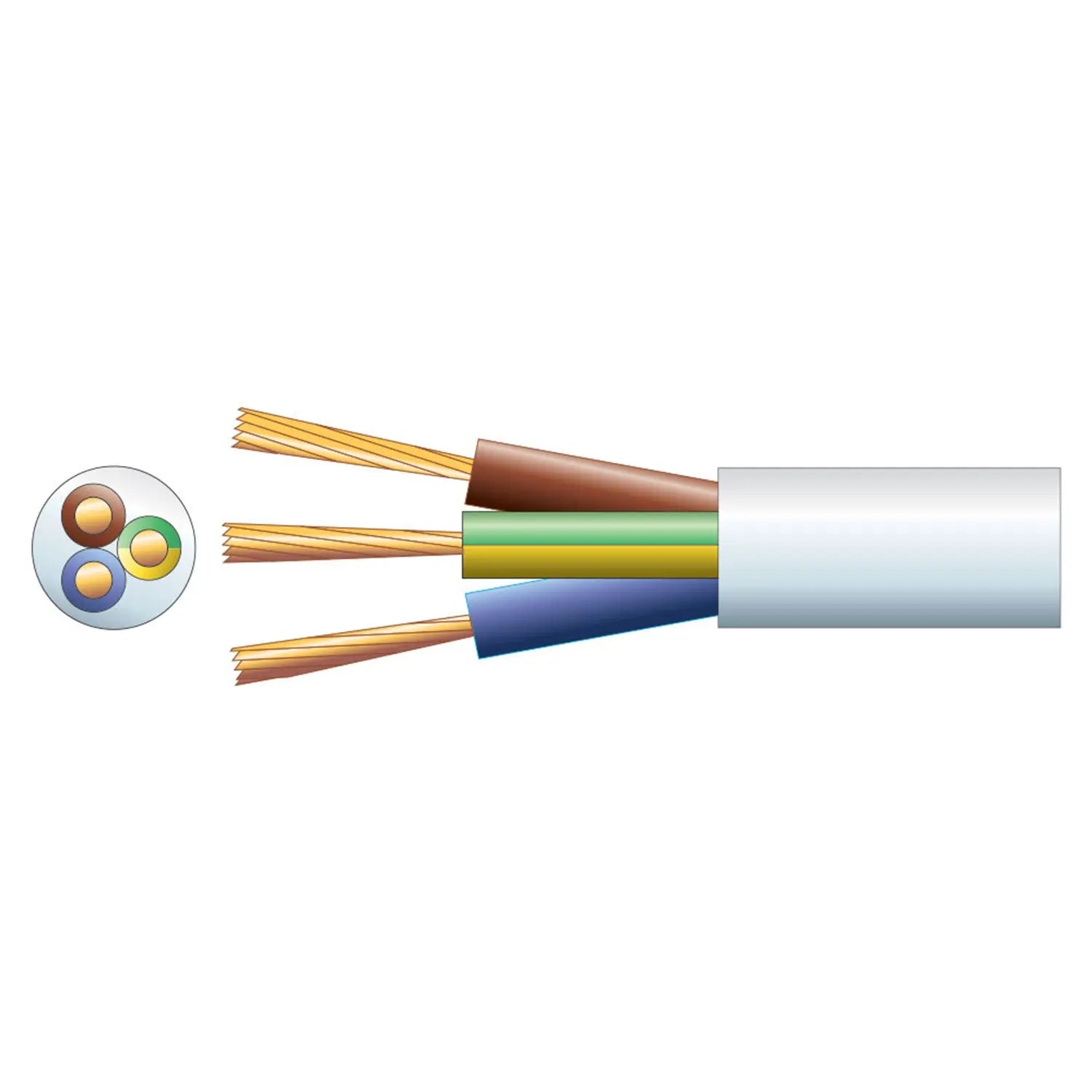 Mercury 3 core round mains PVC, 3 x 24/0.2mm, 6A, 6.1mm, White, 100m