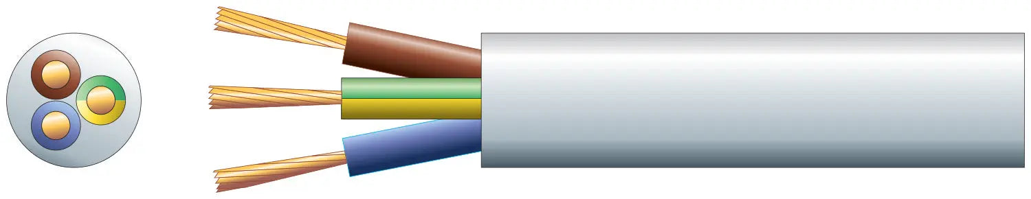 Mercury 3 core round mains PVC, 3 x 48/0.2mm, 15A, 8.7mmØ, White, 100m