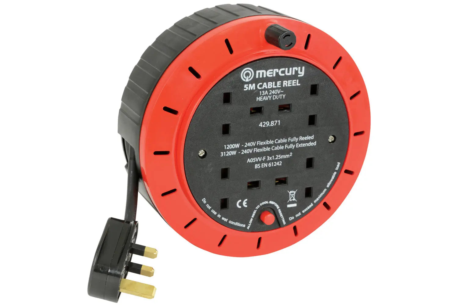 Mercury 5m 4-Gang Extension Reels with Thermal Cut Out