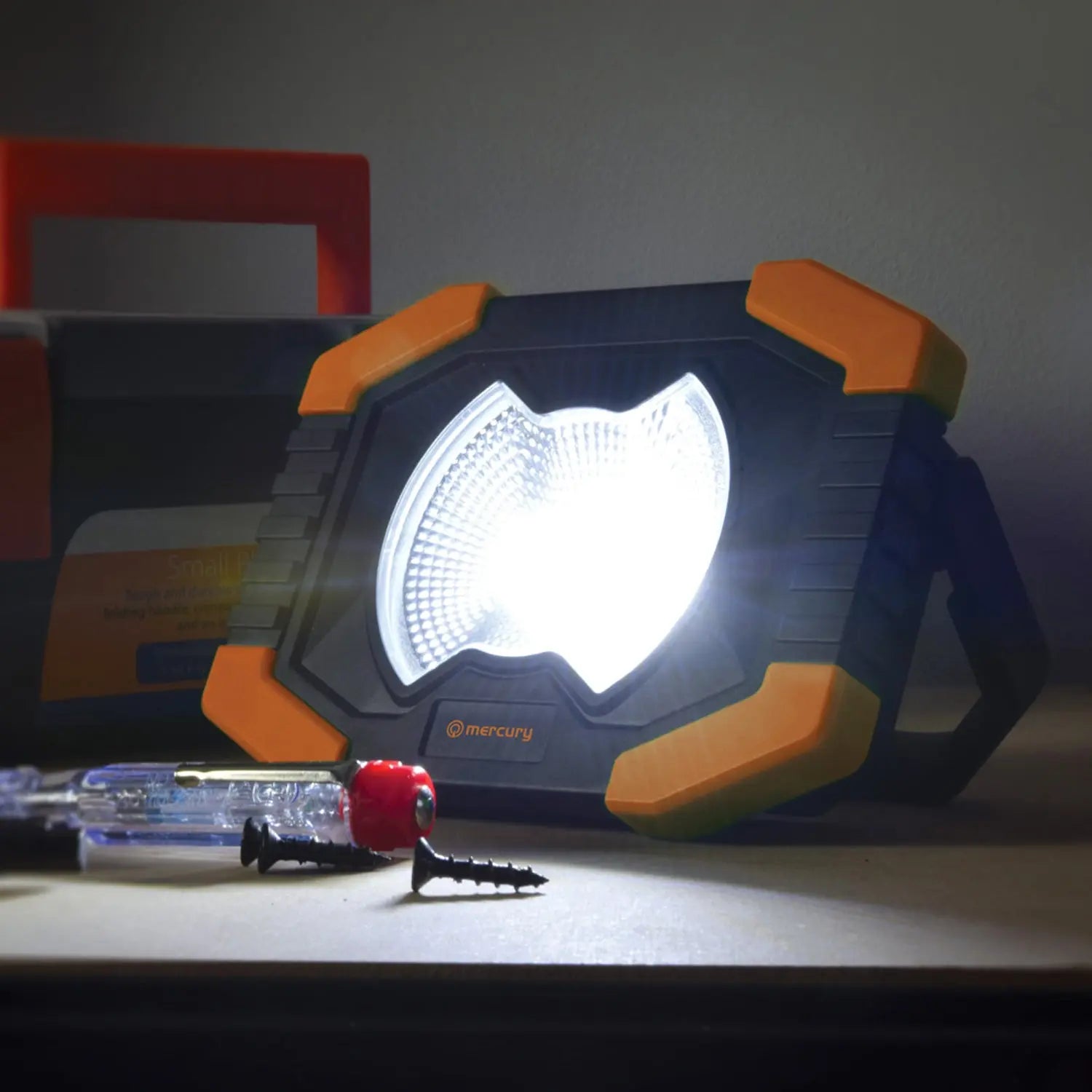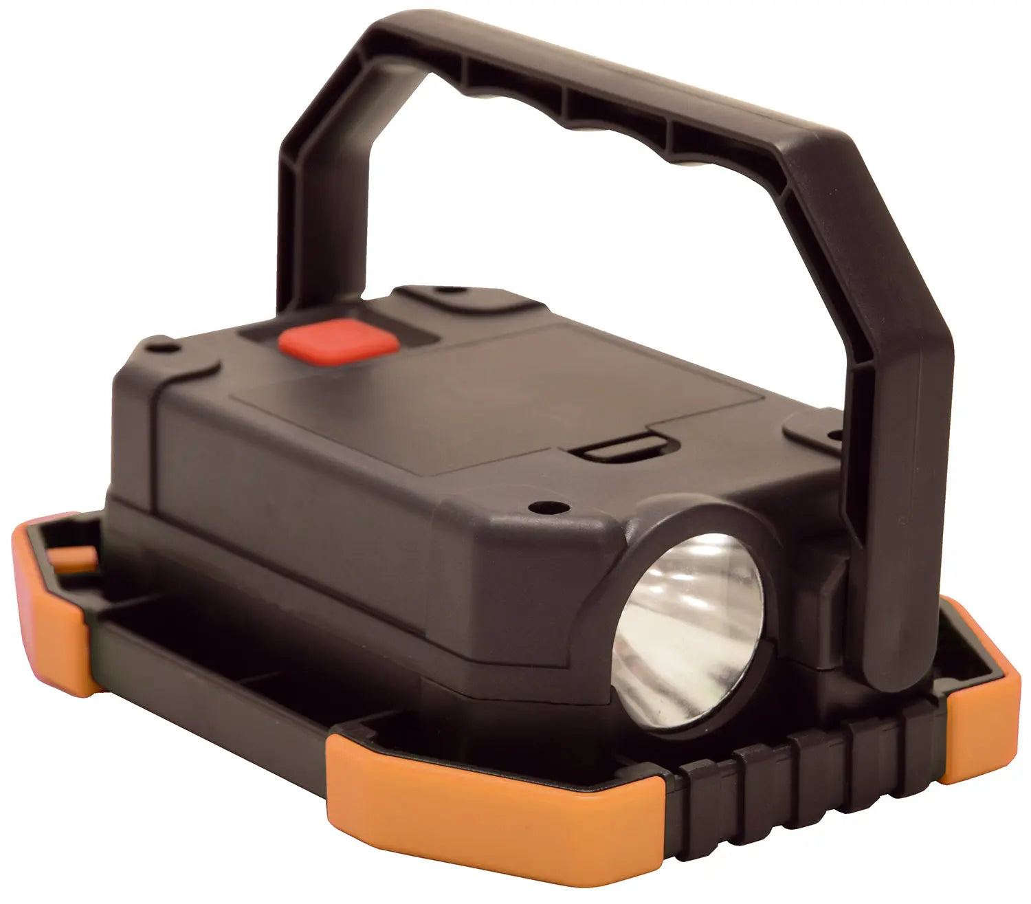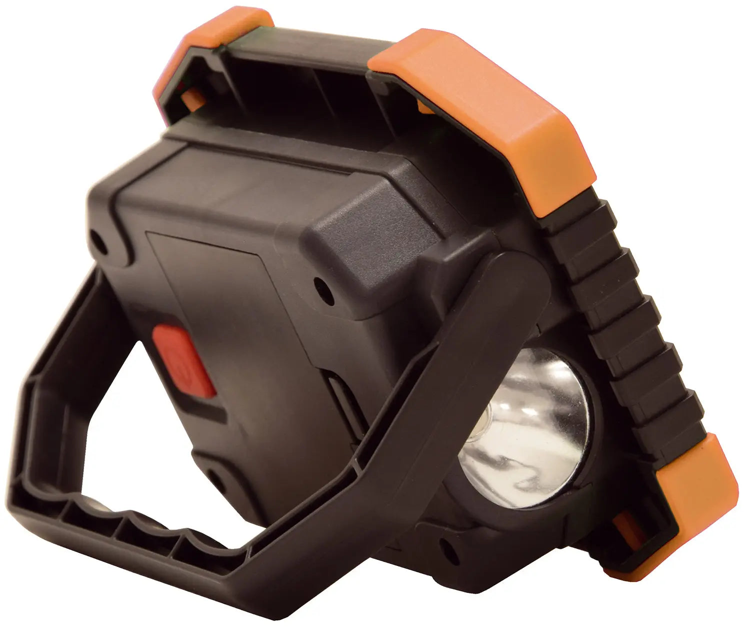 A durable, battery powered LED work light and torch. The practical, compact design makes it ideal for using around the home or workplace, with an adjustable handle to allow the light to be positioned at different angles.