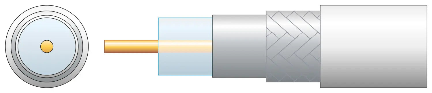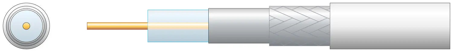 75 Ohms RG6 coaxial cable constructed of solid copper clad steel conductor, air spaced polyethylene dielectric, aluminium foil screen, aluminium braid and PVC sheath. The overall screen and braid significantly reduce noise penetration to the conductor making it suitable for digital, satellite and cable TV signal transmission.