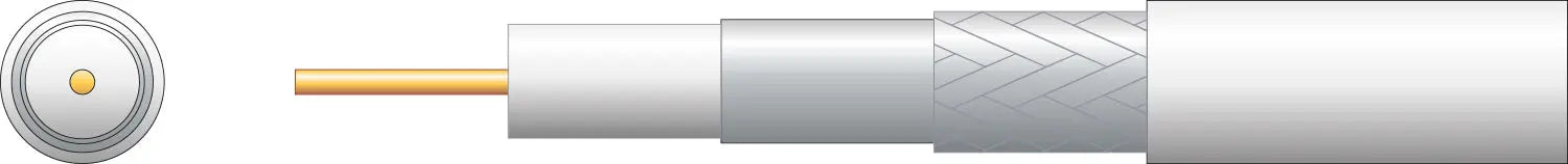 75 Ohms RG6 coaxial cable constructed of solid copper clad steel conductor, foam filled polyethylene dielectric, aluminium foil screen, aluminium braid and PVC sheath. The overall screen and braid significantly reduce noise penetration to the conductor making it suitable for digital, satellite and cable TV signal transmission.