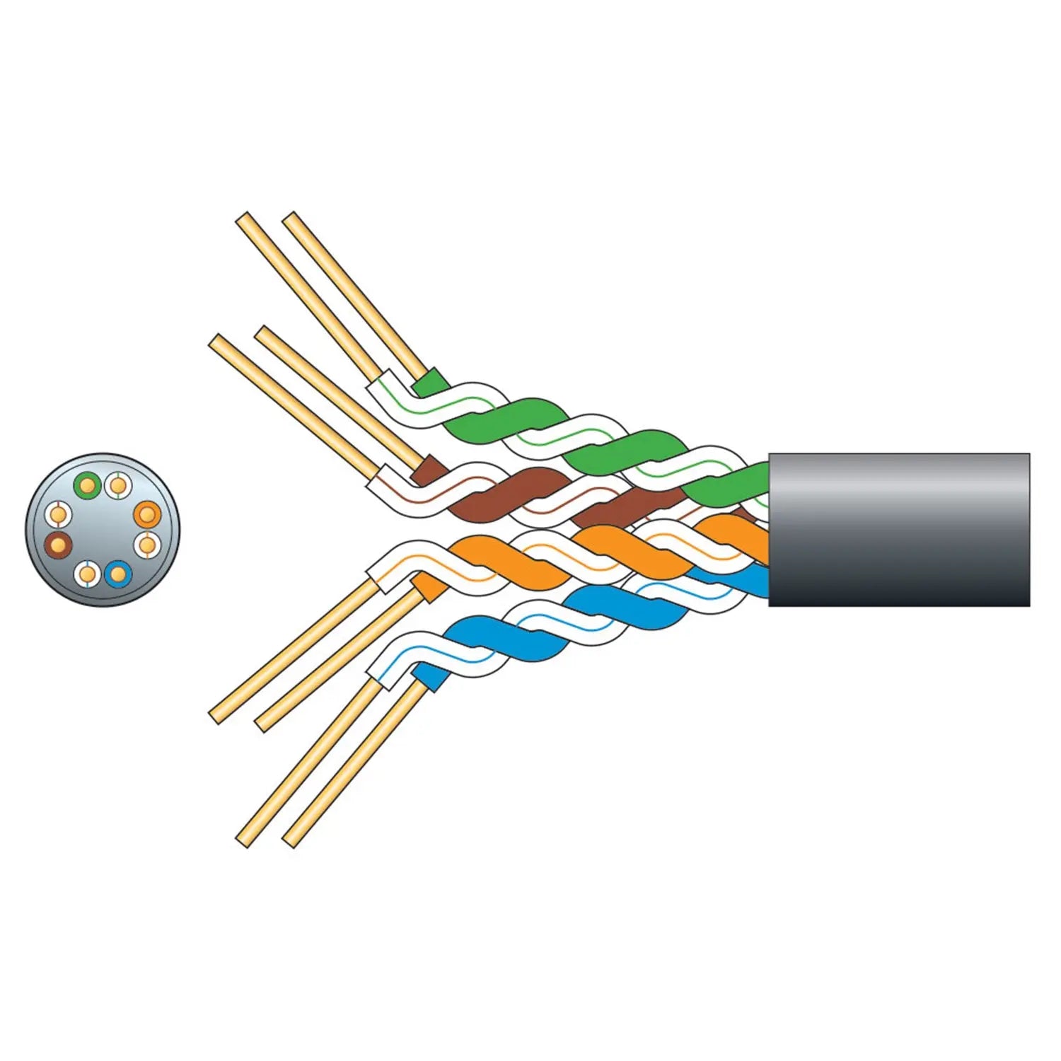 Solid conductor twisted pair data cable with PE sheath supplied in dispensing box and marked at 1 metre intervals. Suitable for high speed data transmission such as Gigabit Ethernet outdoor applications.