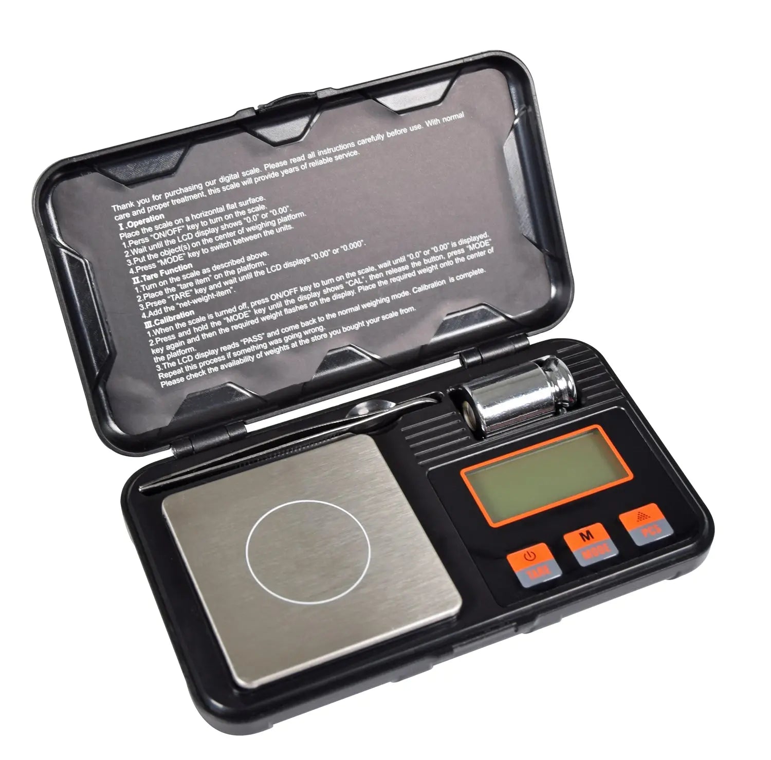 A rugged and compact pocket scale for the precision measurement of jewellery, precious metals and other delicate objects. These highly accurate scales have a sensitive weighing platform that displays up to a thousandth of a gram. Calibration weight and tweezers included.