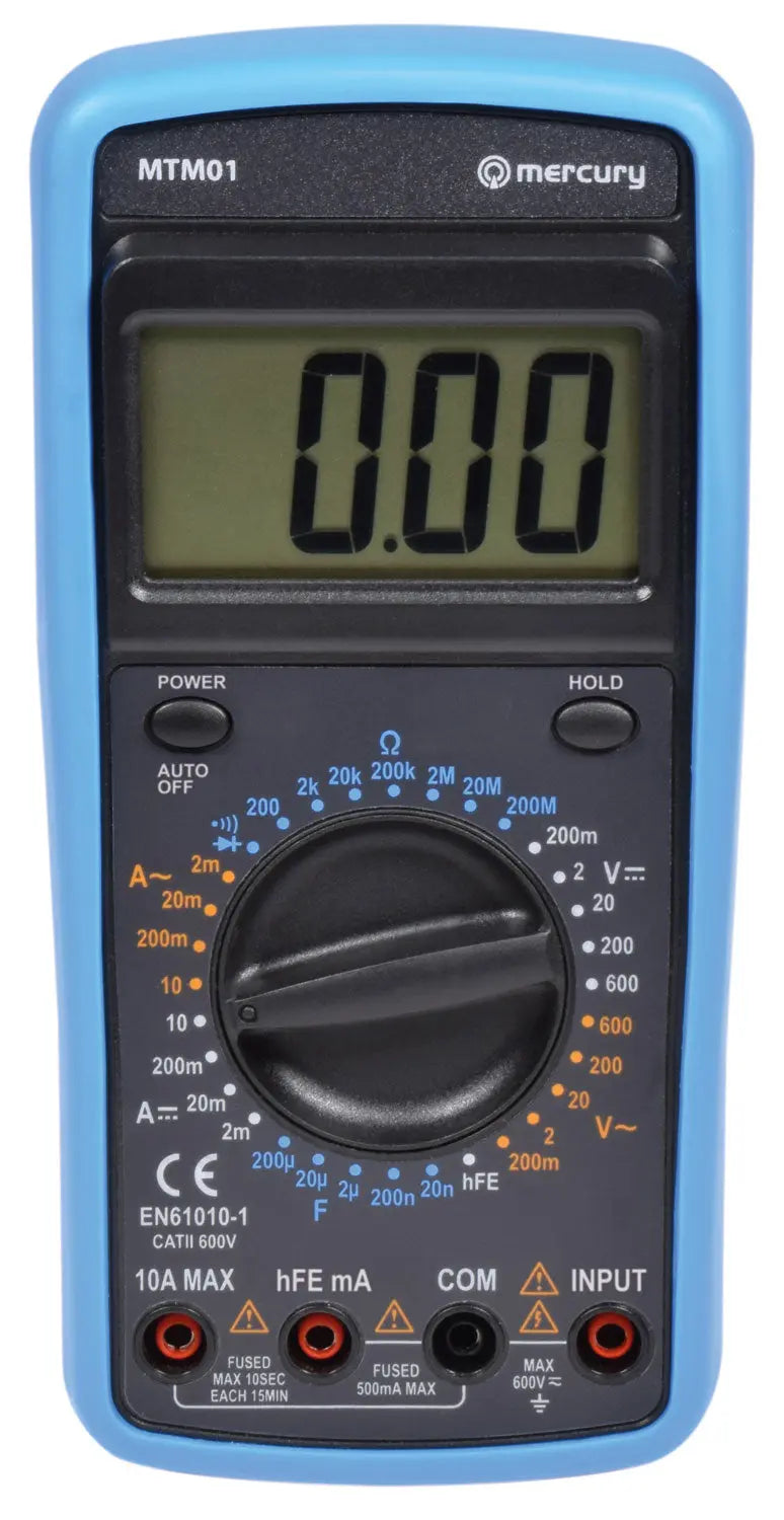 This professional digital multimeter offers 32 testing ranges and 8 functions and comes supplied ready to use with a shockproof rubber holster, shrouded testing leads and battery.