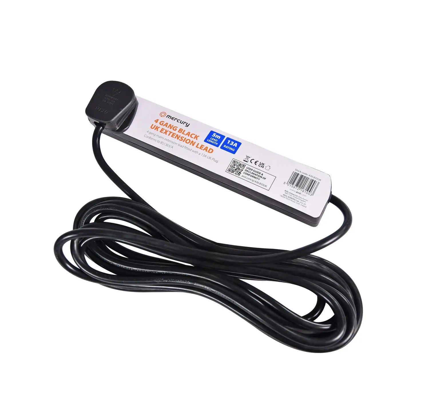 Mercury UK 4-Gang Extension Lead Black 5.0m