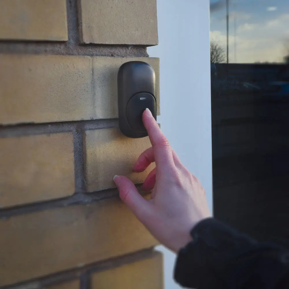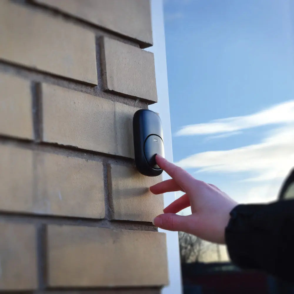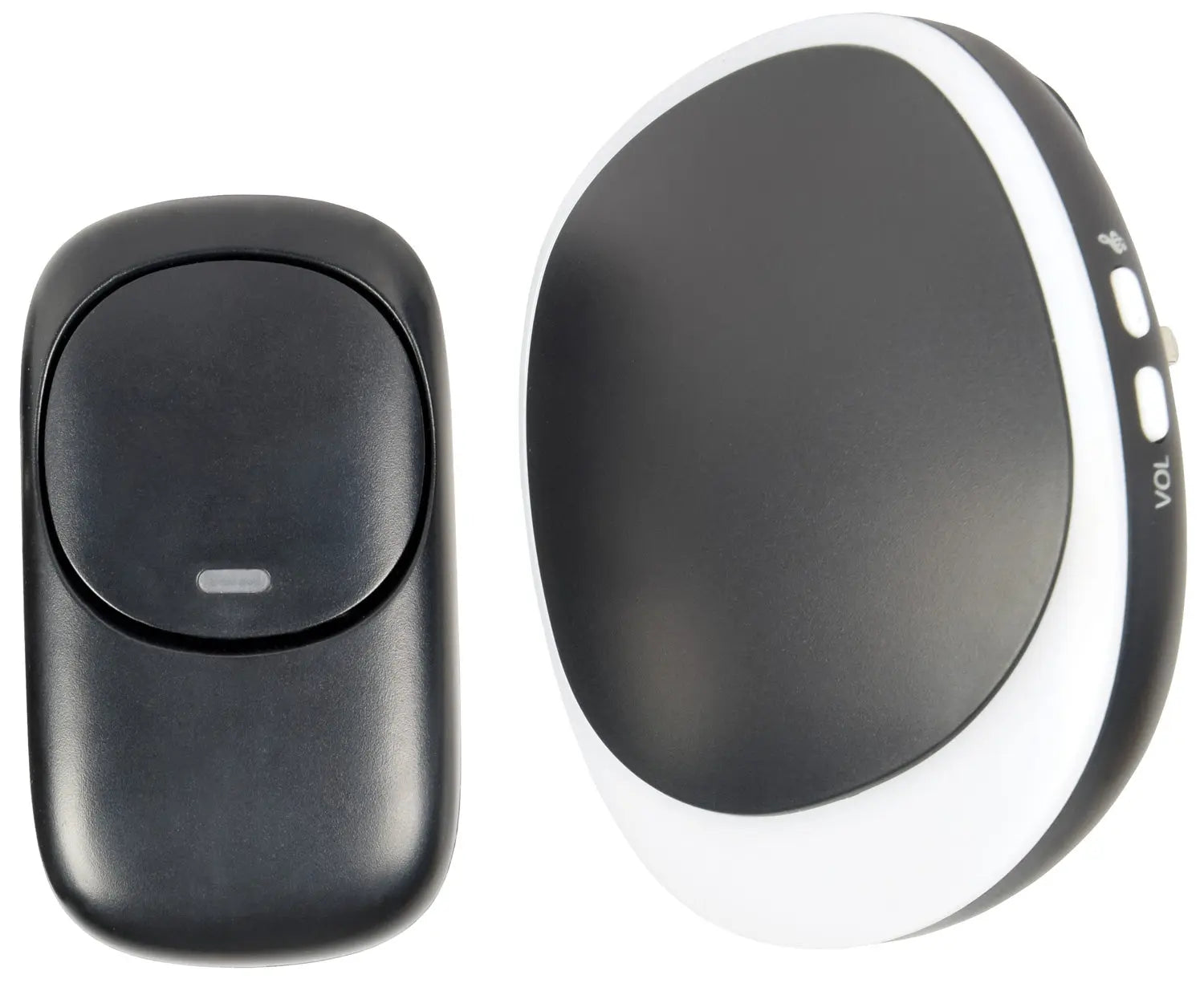A stylish, wireless doorbell set, providing an innovative way to be alerted to visitors. Choose from 38 different ring tones and melodies which notifies via a compact plug-in chime with LED light alert. The chime can be plugged into any room within the wireless range, giving you flexibility to place throughout the home or office.