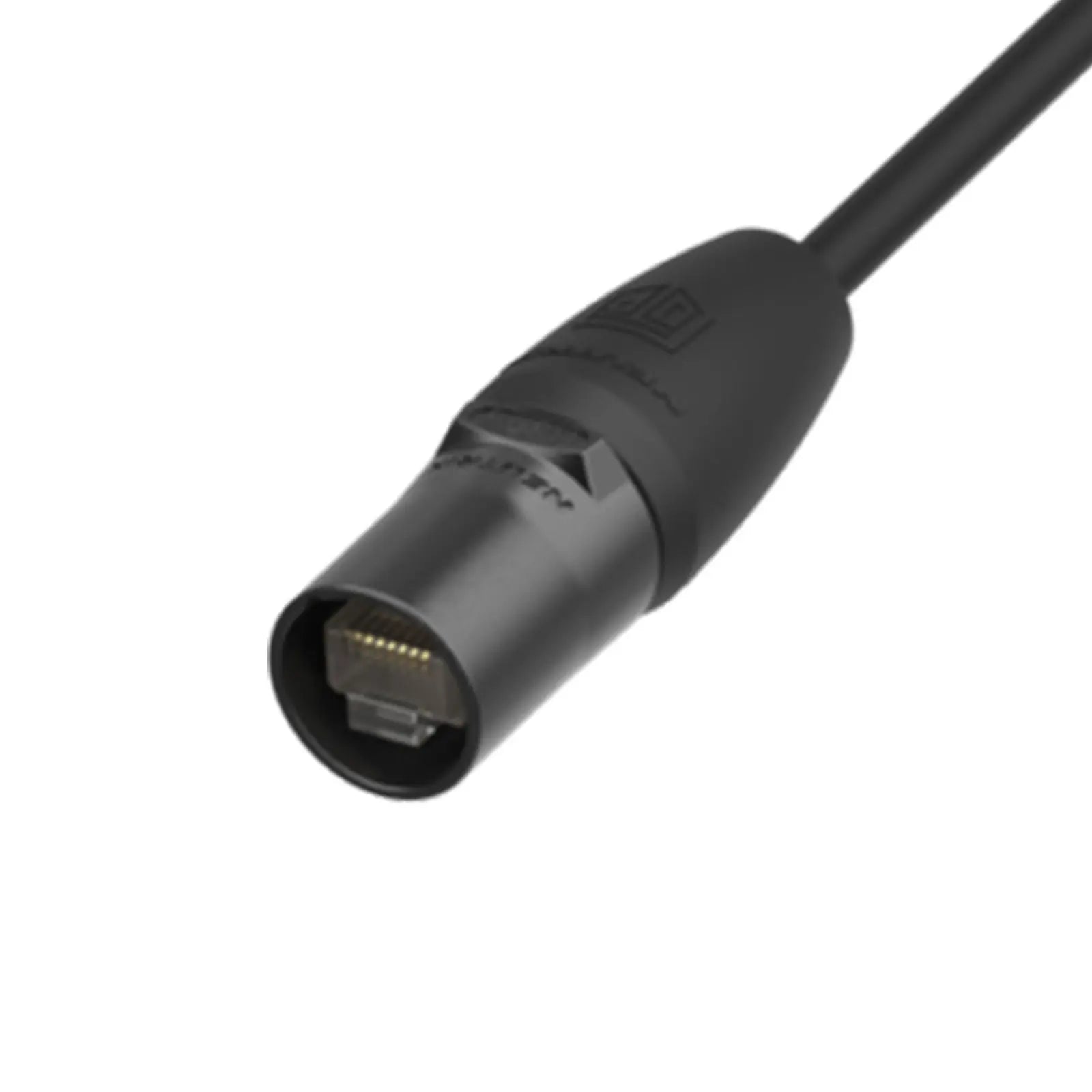 The Neutrik NE8MXR-B-TOP is a rugged retractable RJ45 carrier connector from the etherCON® TRUE OUTDOOR PROTECTION (TOP) series engineered for demanding conditions. With a retractable shell for compatibility with both standard RJ45 and etherCON® receptacles it ensures secure weather-resistant performance. IP65-rated when mated or sealed it features UV-resistant halogen-free materials and a flame-retardant V0 rating—ideal for professional AV industrial and outdoor networking. Retractable shell design ensures compatibility with standard RJ45 and etherCON® receptacles Die-cast zinc housing with chuck-type strain relief IP65 protection when mated or sealed with SCMX-TOP cap UV-resistant halogen-free V0 flame-rated materials Supports cables with outer diameters of 5.5–8.0mm ≥1000 mating cycles and ≥100 retracting cycles for long-term reliability Designed for outdoor professional AV and industrial networking applications