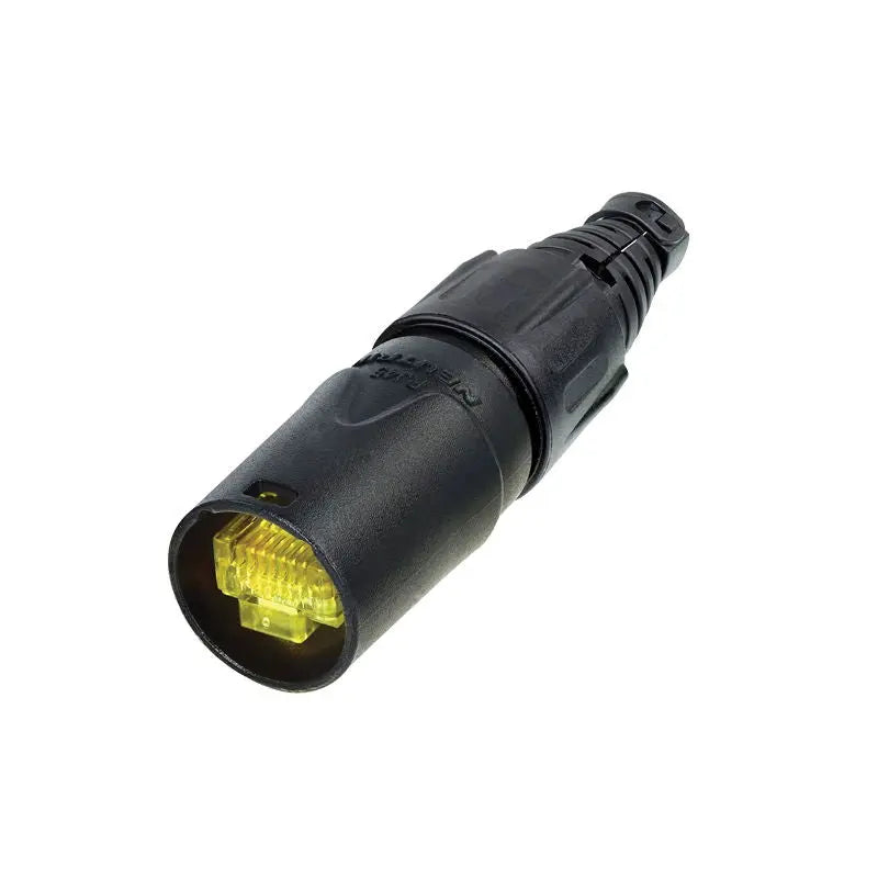 RJ45 connector carrier for pre-assembled RJ45 cables consists of black chromium shell bushing and boot. Packed with two cable protection elements for cable diameter up to 8mm. Allows assembly of pre-assembled conventional RJ45 cables The etherCON connector carrier upgrades a conventional RJ45 connector to an extremely robust lockable solution Connector carrier accepts the most common RJ45 plugs Rugged diecast shell and unique chuck type strain relief Protects Ethernet connections in a variety of commercial type applications and is designed to prevent breakage of the fragile components of standard RJ45 connectors Overall cable diameter: 8mm NOTE: Does not intermate with the CAT6 chassis connectors NE8FDY-C6 and NE8FDY-C6-B