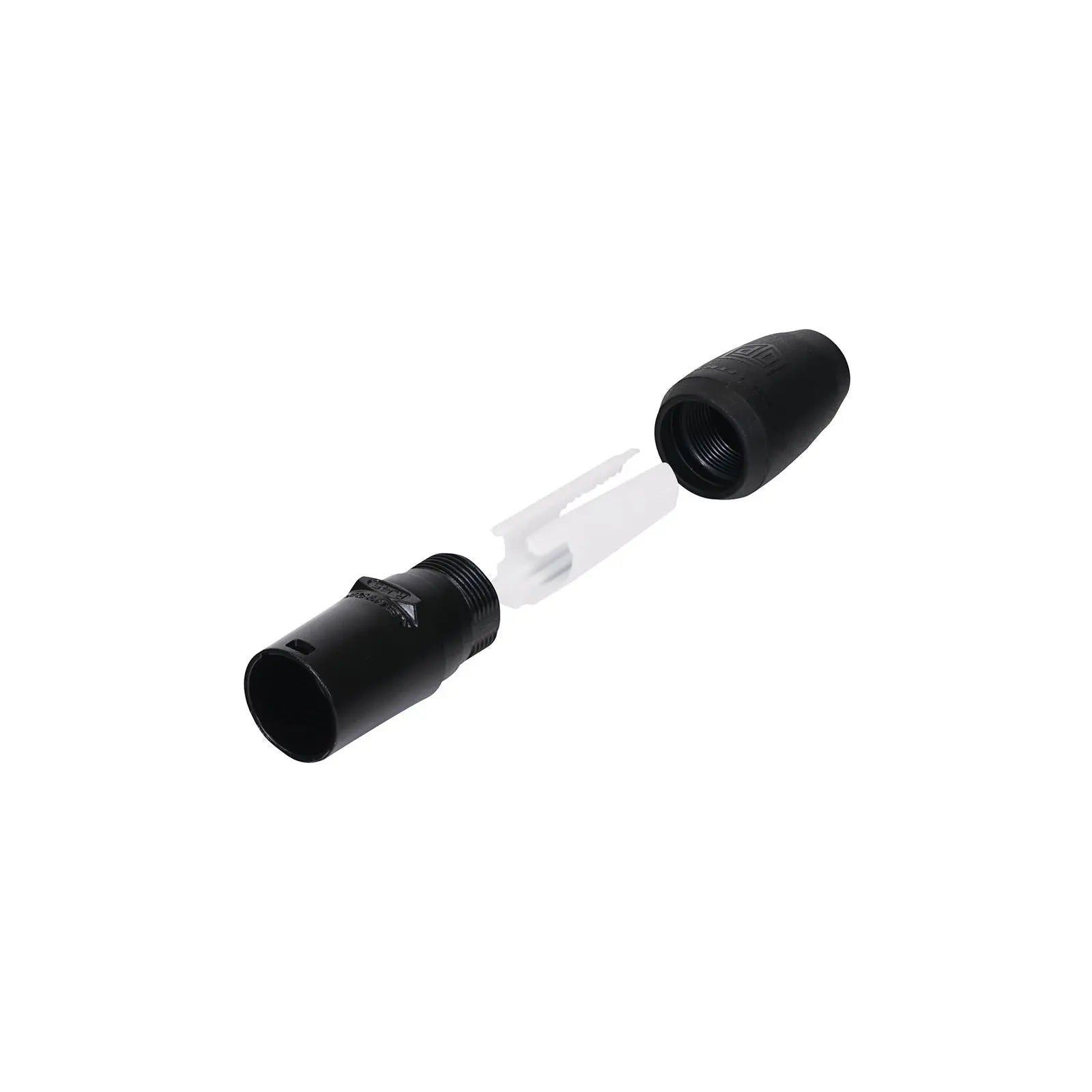 The Neutrik NE8MX-B-TOP Series includes ruggedised RJ45 cable connectors designed for outdoor and demanding environments. Engineered to meet IP65 and UL 50E standards when mated these connectors ensure superior protection against dust water and harsh conditions. Featuring a robust zinc die-cast shell with a weatherproof black chromium finish the NE8MX-B-TOP Series provides durability and reliability. These connectors are compatible with shielded or unshielded CAT5e cables and support high-speed data transmission up to 100 Mbps. Their simple assembly process and secure twist-lock system make them ideal for professional applications in AV broadcast and industrial settings. Robust Design: Rugged die-cast shell with unique chuck-type strain relief Environmental Protection: IP65 rated and TOP approved per UL50E when mated with appropriate connectors Versatility: Accepts most common RJ45 plugs User-Friendly: Allows assembly of non-preassembled conventional RJ45 cables