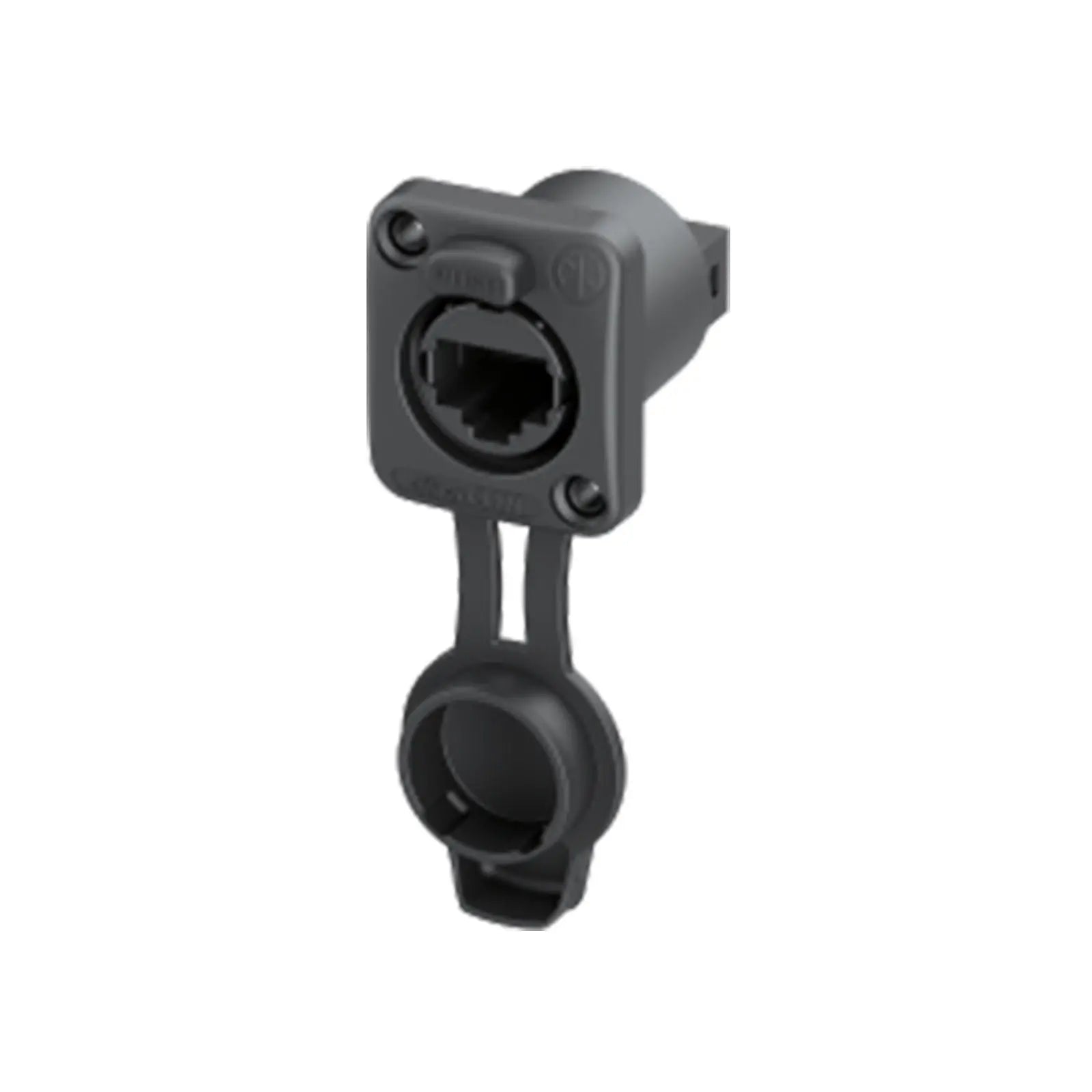 The Neutrik NE8FDIS-TOP is a premium etherCON RJ45 chassis connector designed for demanding outdoor applications. Featuring IP65/IP67 sealing—even when unmated—airtight construction corrosion resistance UV protection and 100W PoE support (IEEE 802.3bt Type 4 Class 8) this rugged D-shape front-mount connector provides reliable data transmission in harsh environments. The IDC termination features a 2x4 pin box header feedthrough for efficient internal wiring. ESD protection up to 2kV and compliance with international standards make it ideal for professional AV broadcast and industrial use.