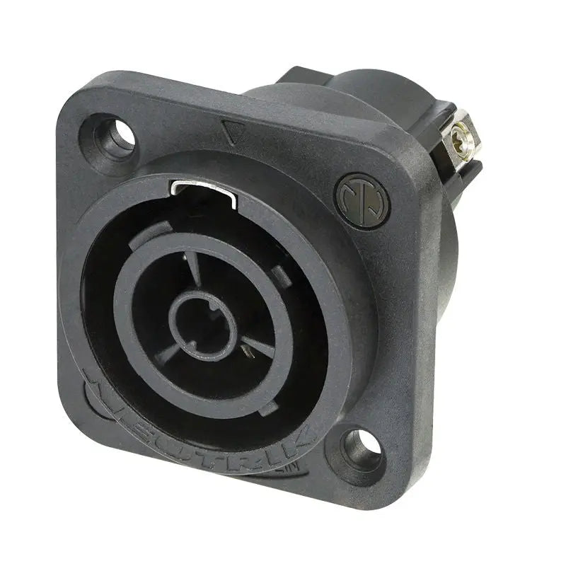 The powerCON TRUE1 TOP is a locking 16A true mains connector for indoor or outdoor applications. It replaces appliance couplers wherever a very rugged solution in combination with a locking device is needed in order to guarantee a safe power connection. The connector can be connected or disconnected under load or live ideal for use in the harsh and demanding environment applications of entertainment equipment like PA systems LED screens or lighting. Chassis mount power outlet connector Screw terminals Heavy-duty sealed power connector for harsh and demanding environment Outdoor protection according to IP65 and UL50E enclosure type 4 (in mated condition or in combination with the rubber sealing cover SCNAC-FPX) Uses high impact UV-resistant materials True mains connector with breaking capacity (CBC) Lockable 16A single phase connector (USA: 20A) Easy and reliable twist lock system Extremely robust and reliable Unique Neutrik cable retention ENEC certified according to IEC 60320