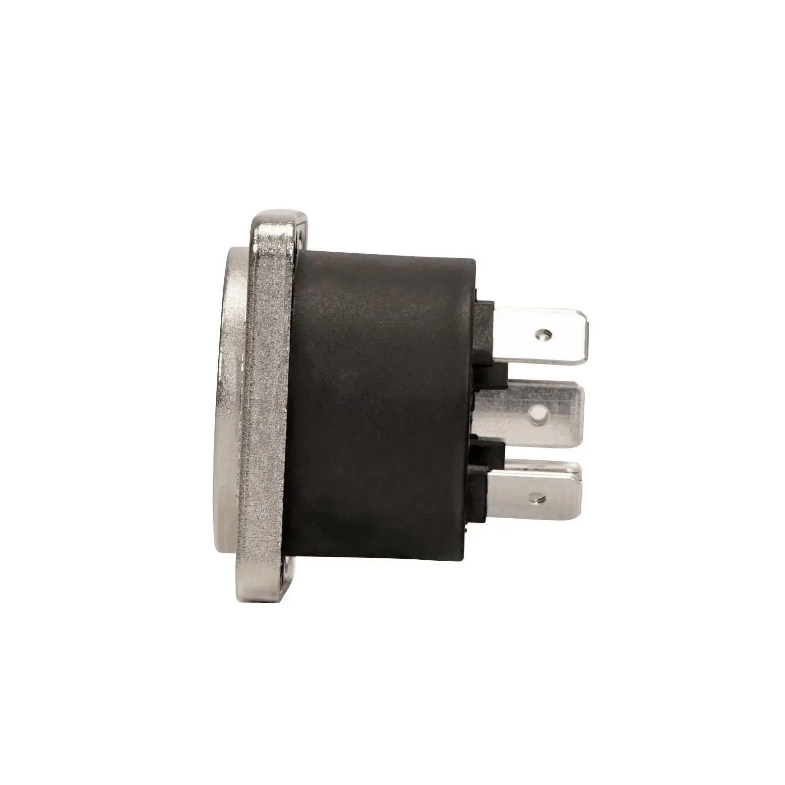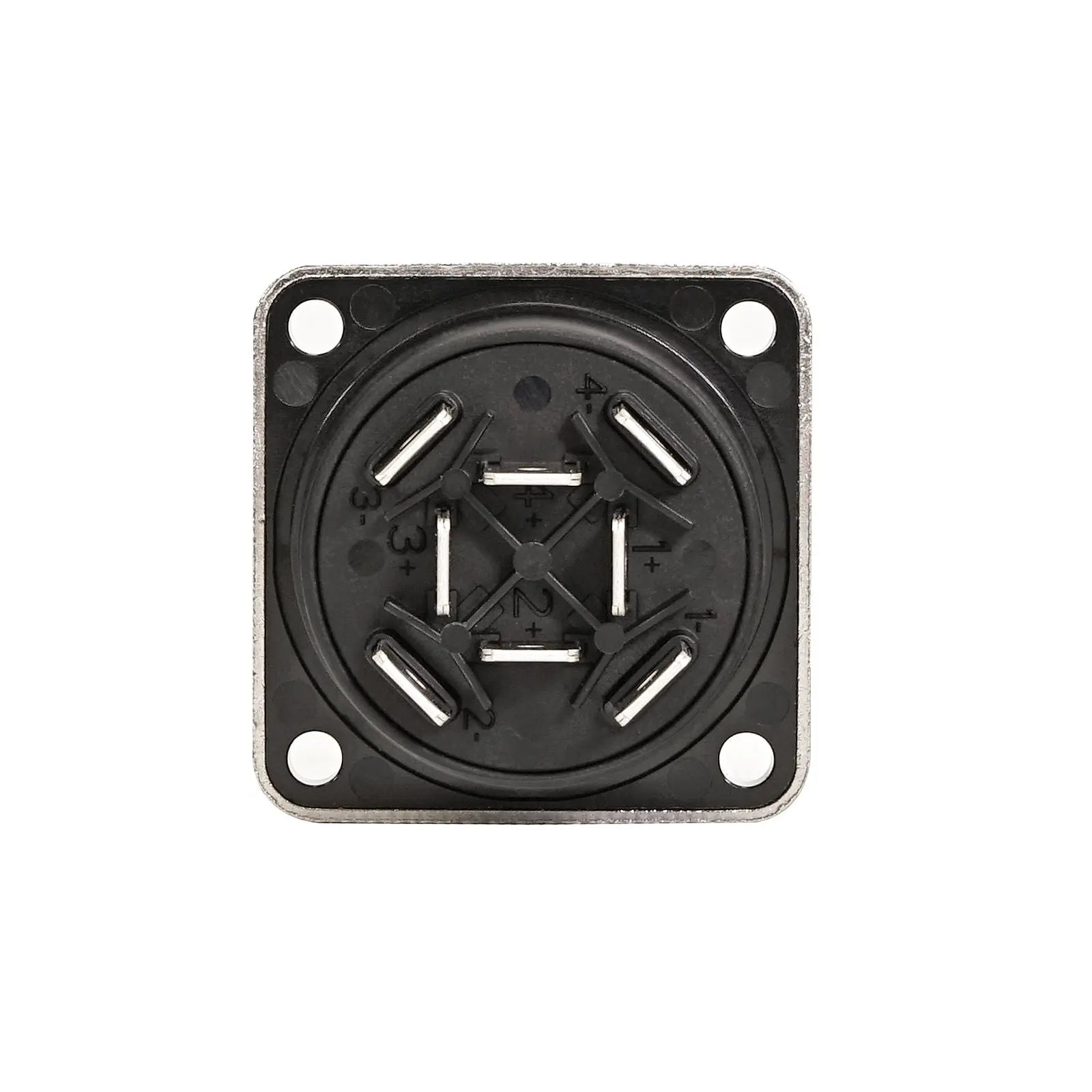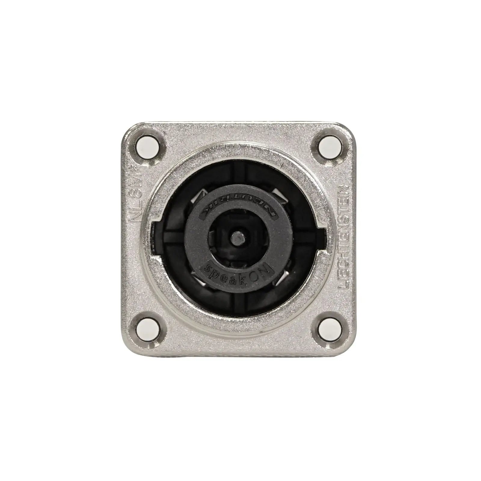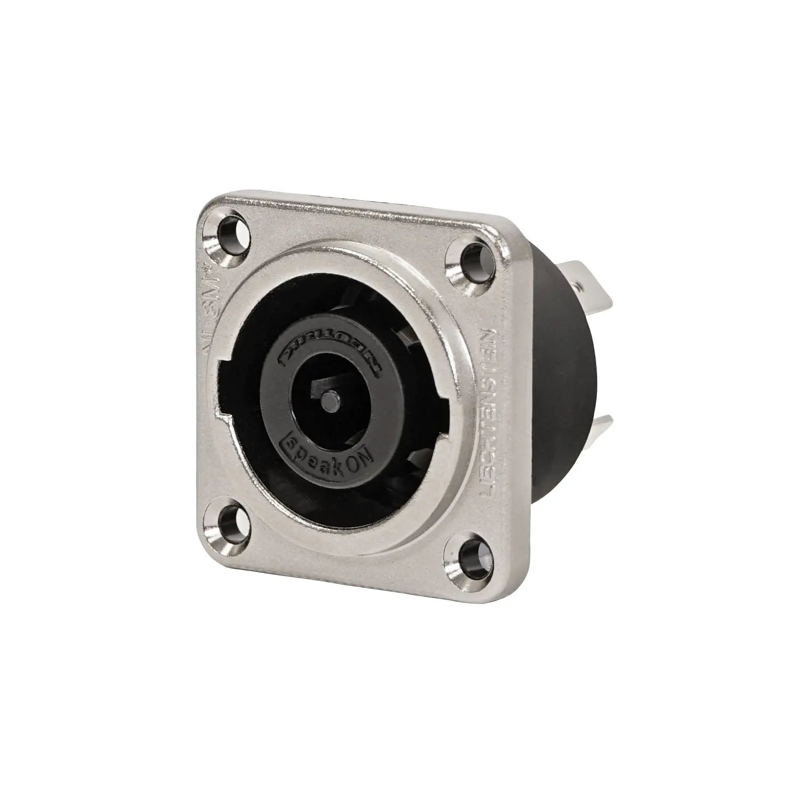 The Neutrik NLT8MPXX is an 8-pole male chassis connector designed for heavy-duty amplifier-loudspeaker applications especially in professional touring settings. It features a robust metal housing with a nickel finish ensuring durability and reliable performance. Manufacturer's Part Code: NLT8MPXX 8-pole male speakON chassis connector for professional audio applications Locking 30A / 250V AC-rated connector suitable for amplifier-to-loudspeaker connections Rugged nickel metal housing for enhanced durability Quick Lock system ensures easy and secure connections Compatible with all Neutrik speakON 8-pole connectors for seamless integration ¼" flat tab termination for reliable and straightforward assembly Ergonomic design with slip-proof two-component molded housing for comfortable handling Superior Neutrik quality standard ensures exceptional robustness and reliability Enhanced kink protection through a two-component bushing design Unique Neutrik locking bushing and strain relief accommodates cable diameters from 8mm to 20mm