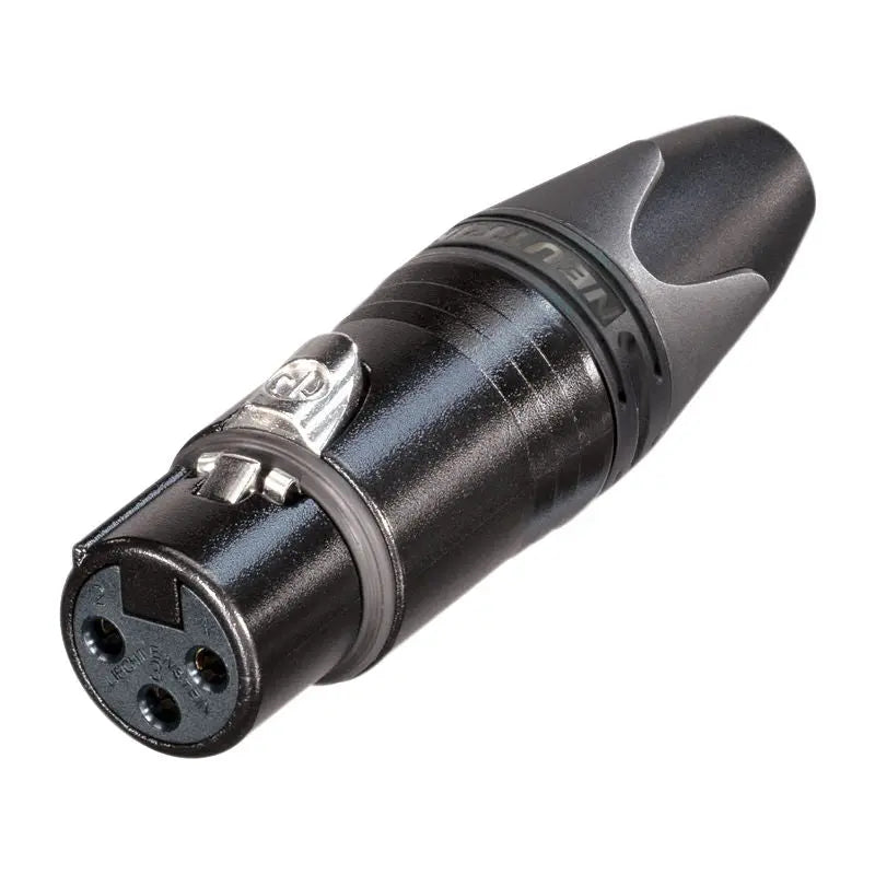 The next generation of the worldwide accepted standard of XLR cable connectors. The successor of the X series offers several new features which make it more reliable easier to assemble and improves contact integrity as well cable strain relief. 3 pole female cable connector with black metal housing and gold contacts Unique cage design of female contact for low contact resistance and high integrity Female contact incorporates a solder barrier to prevent solder running into the contact mating area Female connector with improved solid metal latch Additional ground spring contacts for better shell ground continuity Improved chuck type strain relief Polyurethane gland gives high protection to cable bending stresses Rugged zinc diecast shell long lasting and dependable Internal thread on shell is well protected against any damage Branded with unique hologram - guarantees genuine and authentic Neutrik product