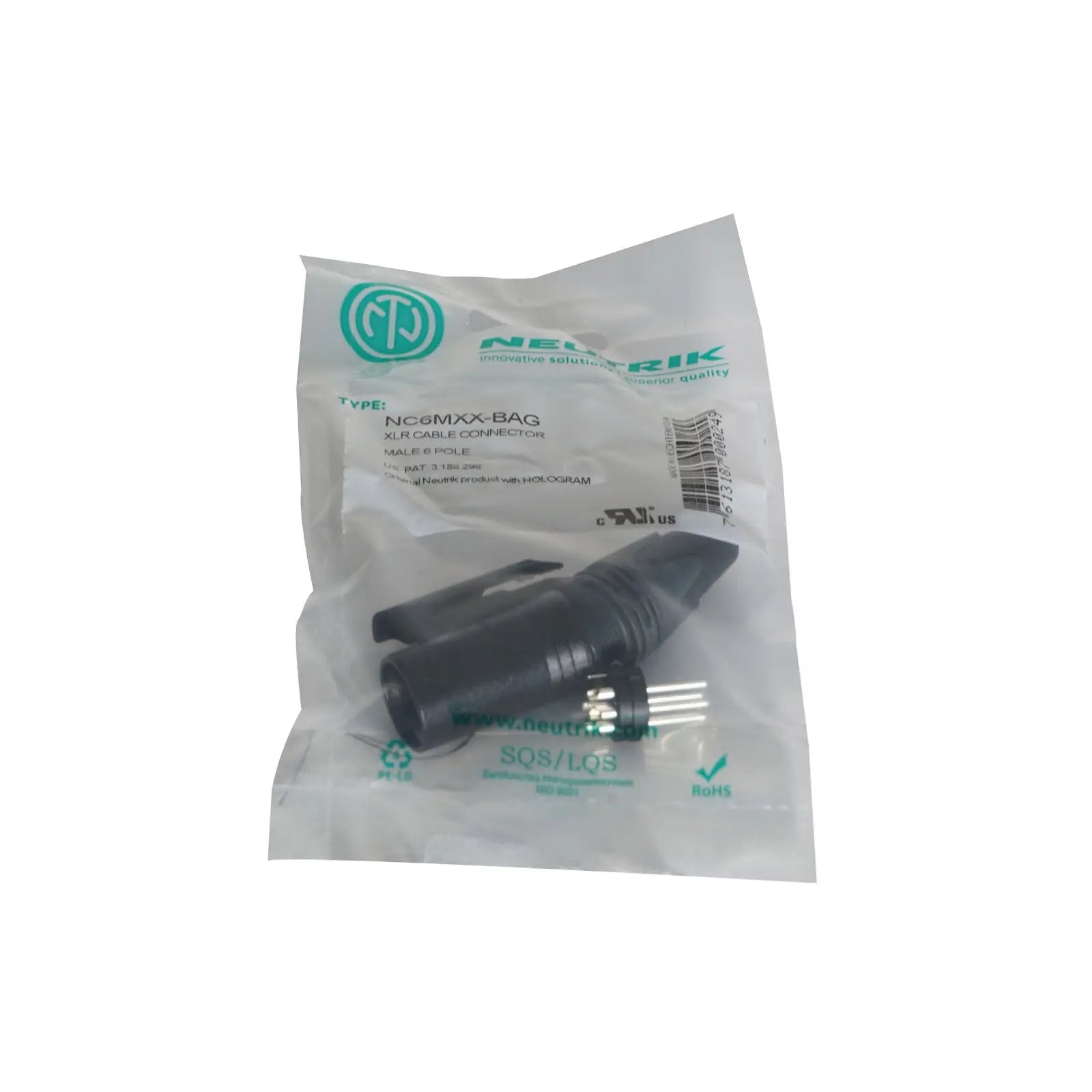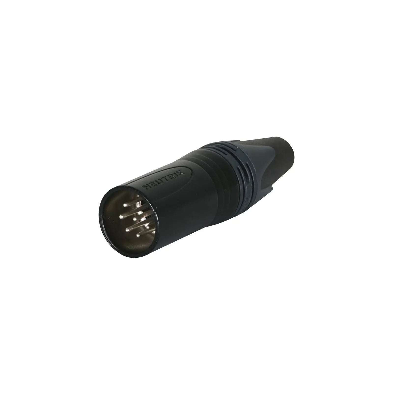 6 pole male cable connector with black metal housing and silver contacts. The next generation of the worldwide accepted standard of XLR cable connectors. The successor of the X series offers several new features which make it more reliable easier to assemble and improves contact integrity as well cable strain relief. Improved locking recess without window increases durability Improved chuck type strain relief provides higher pull-out force and makes assembly easier and faster Boot with polyurethane gland gives high protection to cable bending stresses Coloured rings and boots available for coding or identification Sleek and ergonomic design Rugged zinc diecast shell long lasting and dependable Internal thread on shell is well protected against any damage Branded with unique hologram guarantees genuine and authentic Neutrik product