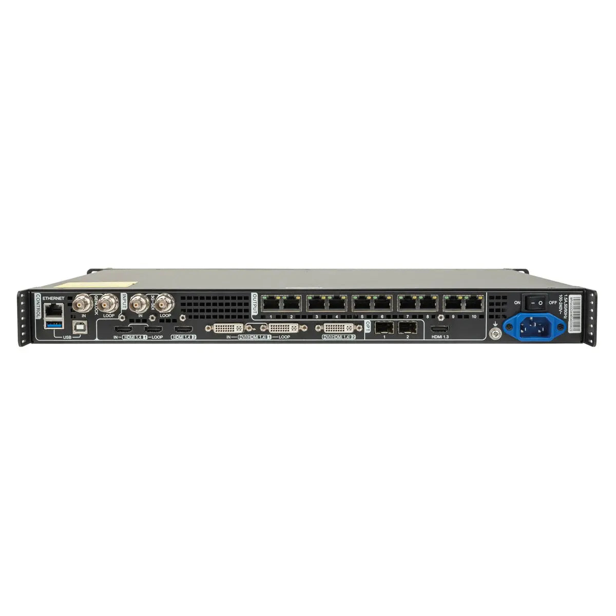 10x Ethernet Ports for LED Screen connection 1x HDMI (Monitoring or Output) 1x HDMI1.4 LOOP 1x DVI LOOP 1x 3G-SDI LOOP 2x OPTICAL for LED Screen connection