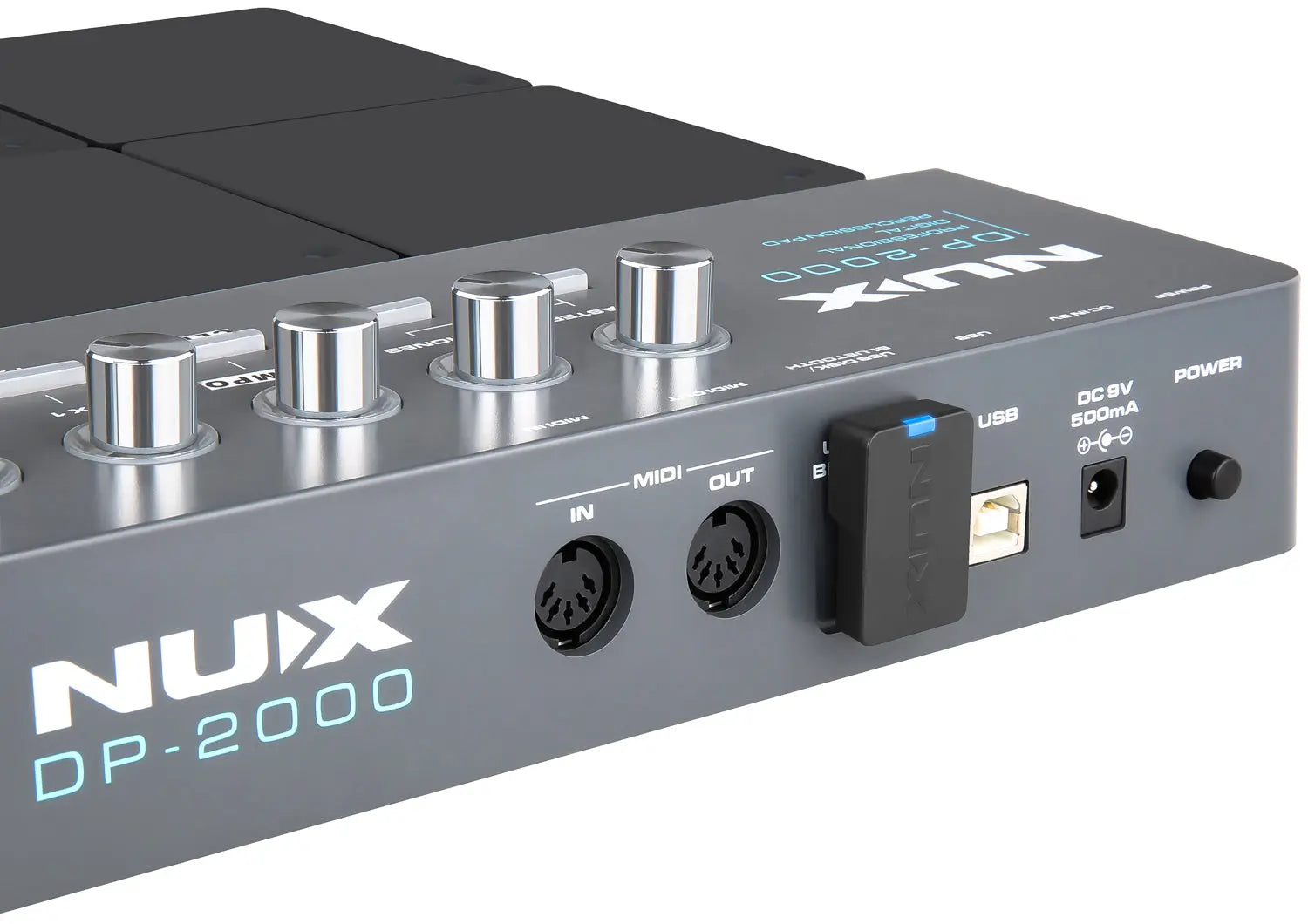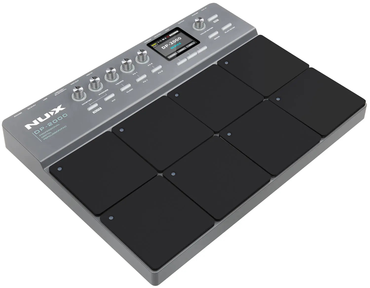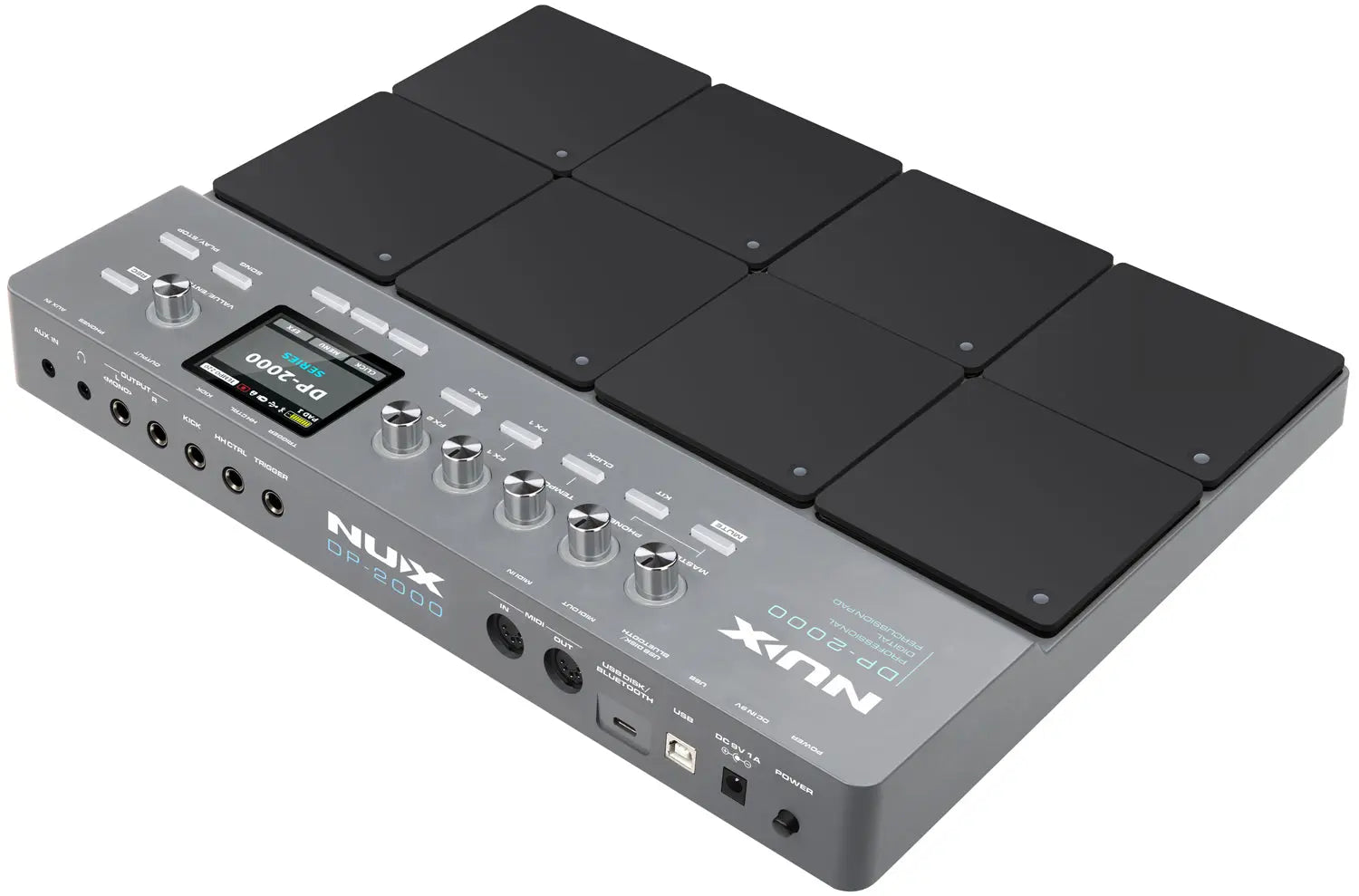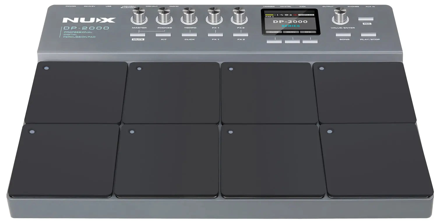 DP-2000 is a digital percussion pad with 8 touch sensitive zones and a huge library of internal sounds. A USB-to-PC/Mac interface enables integration with a software recording suite as a trigger controller and sound source. Sounds from the flagship DM-8 kit are stored internally, along with additional world percussion instrument samples and the option to add user samples from a USB flash drive. Sounds are assignable to pads and adjusted using the intuitive user interface and control surface, and each pad has a dynamic indicator which varies in brightness to mirror the playing dynamics. Dedicated MIDI in and out connections mean that the DP-2000 can expand a live playing setup or operate from hardware sequencers and other MIDI controllers. In addition to tuning and dynmamics control, dual-engine DSP effects can be applied to each sound and tailored to suit each sound. If performance space is very limited, inputs for a hi-hat pedal, kick pad and an additional trigger can turn the DP-2000 into a fully playable super-compact e-drum kit. Add the possibility of music playback from USB flash drive and comprehensive input and output options, the DP-2000 is as much at home as a standalone instrument or as an expansion to an existing drum or percussion kit.