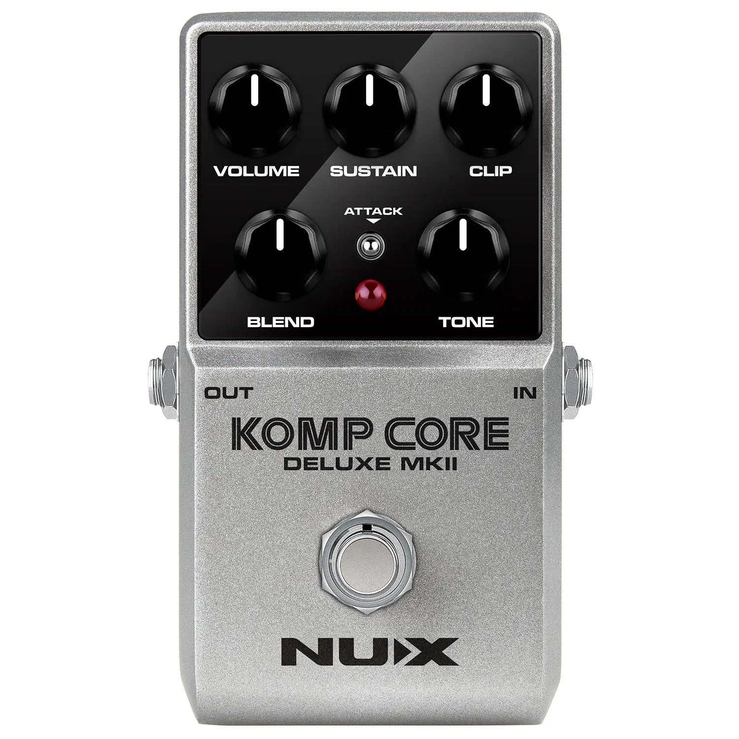 Komp Core Deluxe mkII brings together all the best features that can be found in a guitar compressor or sustainer in a compact stomp box format. Offering clean sustain and peak limiting for undistorted arpeggios and melodies or even boosted to drive the front of an amplifier for smooth lingering lead tones. With variable control of Sustain, Clip and switchable Attack, the compression character can be adjusted to suit different playing styles and a Blend control allows you to dial in just the right amount without swamping the natural string dynamics. An excellent device for clean blues, country twang and even hard rock soloing.