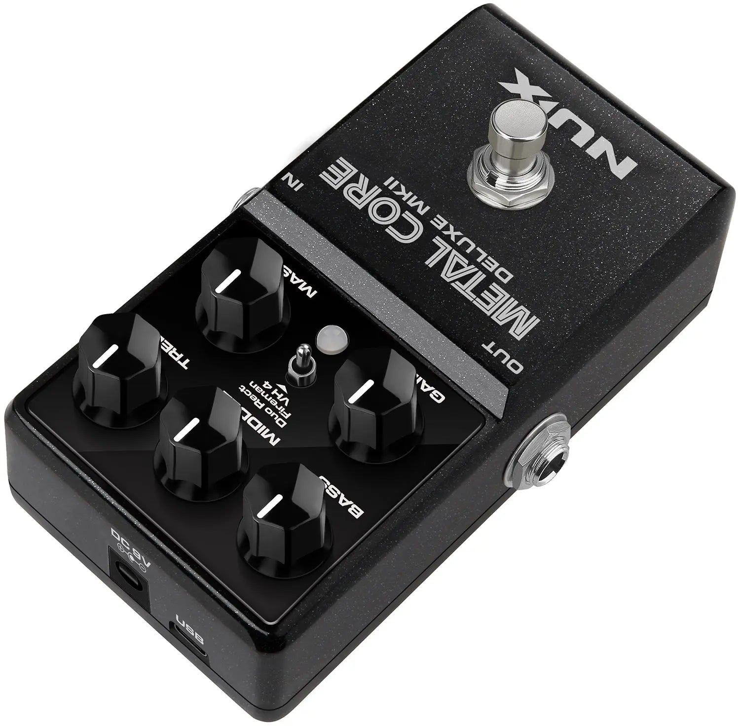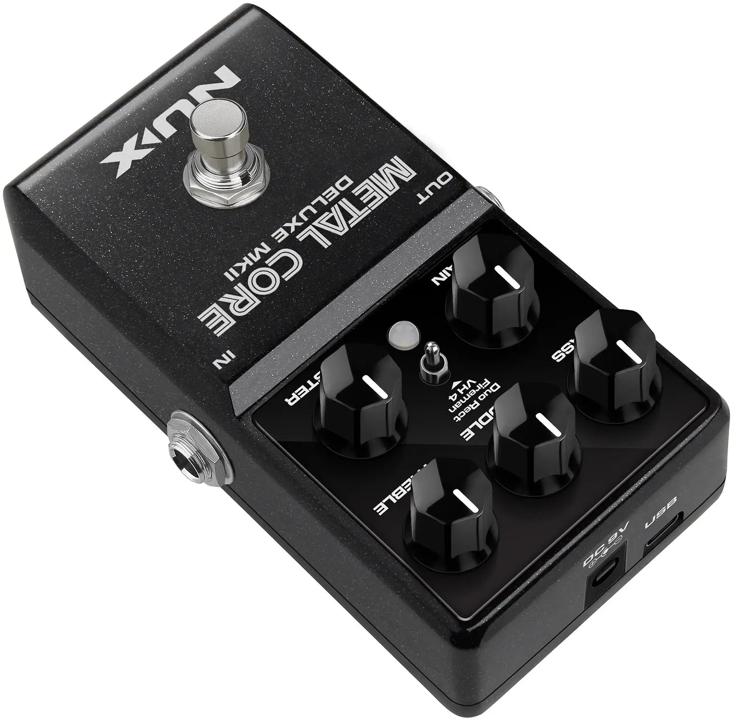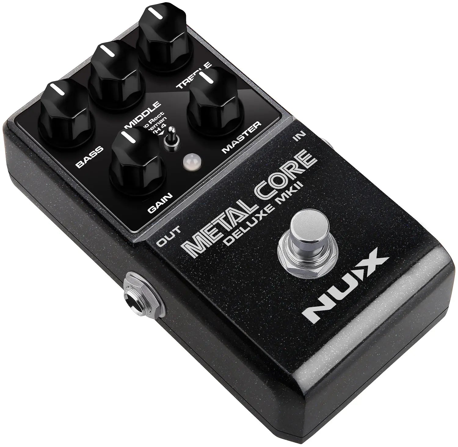 Evolving from the popular Metal Core Deluxe pedal, the mkII version now has 3 selectable amplifier models based on much-revered high gain valve amplifiers. Now with an additional Middle control, the 3-band EQ pairs with Gain and Master to offer a full completement of real amplifier controls, with settings stored into each of the 3 amp models for fast recall. Metal Core Deluxe mkII goes a step further to include IR cabinet simulation, meaning that it can be used directly into a full-range PA system, or without IR simulation into the front of a guitar amplifier as a hard-edged drive pedal. Whichever wiring method is used, Metal Core Deluxe mkII delivers the full breadth of metal tones for hard rock to thrash.