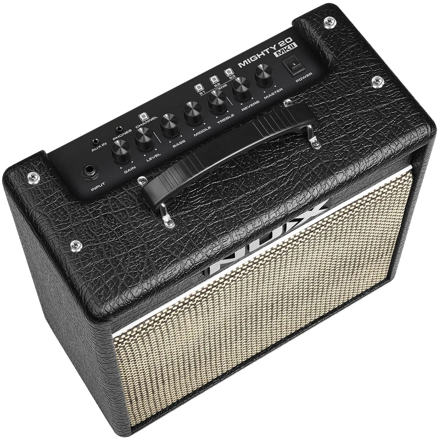 The Mighty 20 mkII is a complete rehearsal, live and recording amplifier and effects unit for guitarists. The 8" speaker is powered by a 20W amplifier section. Select through 7 channel presets that are fully editable with 8 freely moveable processing blocks including the proprietary TS/AC-HD amp modelling and IR cabinet simulation along with a myriad of gain, EQ and time-based effects to choose from. Each channel preset also has 3 pro scenes for quick switching between settings mid-song. Included with the Might 20 mkII is the NBT-1 Bluetooth adaptor, which can be connected at the rear to enable pairing with a smart phone for audio streaming and deep programming using the free-to-download Mighty Amp™ app for ios or Android. Editing from a laptop is easy via USB connection using the free Mighty Editor™ software and this connection also serves as a direct audio interface in a software recording environment. Add to this an internal 60 second phrase looper with auto tempo detection and inbuilt drum machine and the Mighty 20 mkII has everything that a player would need for practice, rehearsal and recording.