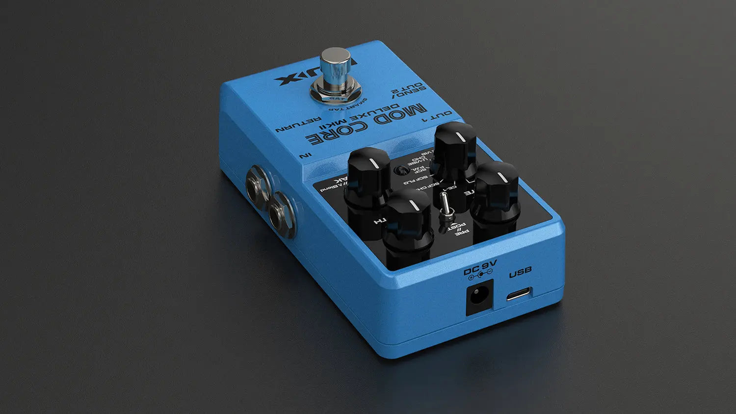 Evolving from the popular Mod Core Deluxe pedal, this mkII version has new effect models, signal routing options and editing features. A choice of 8 modulation models range from chorus to phasing and vibrato, with Rate and Depth controls and an additional Tweak control to adjust a third parameter specific to each effect and a further Blend adjustment in Alt mode. Rate can also be adjusted using a Tap Tempo function of the main footswitch. Mod Core Deluxe mkII has routing options for mono out, stereo out or mono with send/return loop. When using the loop, there are 3 routing options for pre, parallel and post effect placement. If you have space for just one mod effect on your board, the Mod Core Deluxe mkII offers a choice of 8 high quality pedals in a single compact stomp box format.