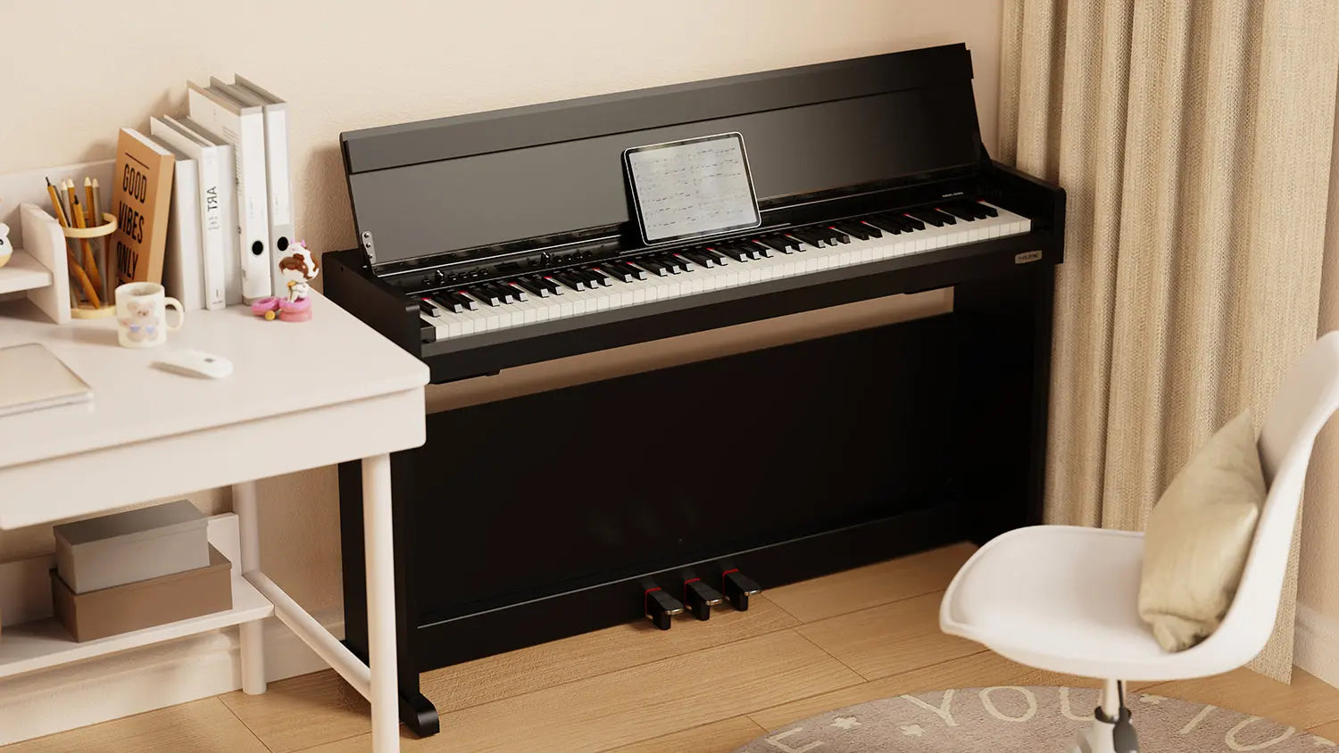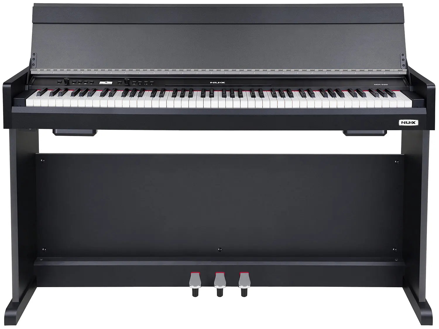 Digital upright piano with integrated stand and comprehensive features in a traditionally styled format. The foundation of the NCK-330 is the 88-note hammer action keyboard with five touch sensitivity settings to choose from, offering the feel of an acoustic piano. The experience is further augmented by the full range stereo speaker system fitted to the underside of the keyboard housing, which can be muted for silent playing through headphones if preferred. A choice of 15 meticulously sampled piano voicings is extended to 128 other instruments and effect sounds for a wide tone palette to suit any music genre. Chorus, reverb and bright effects can also be applied to these tones to add space and enhancement to the selected tones. Adding the split and layering functions offers an even fuller and more diverse selection of tonal possibilities. The input and output section also features a USB audio interface with MIDI control for integration into a digital recording suite. Audio and MIDI can also be transmitted wirelessly over Bluetooth, thanks to the included NBT-1 module. For home playing and solo practice, the NCK-330 also has a metronome, inbuilt playback recorder, and auto accompaniment to provide a full backing track to play along with. For a complete workstation or just a great piano to enjoy, the NCK-330 has all the features expected in a digital piano with the addition of home and studio keyboard facilities all in the same package.