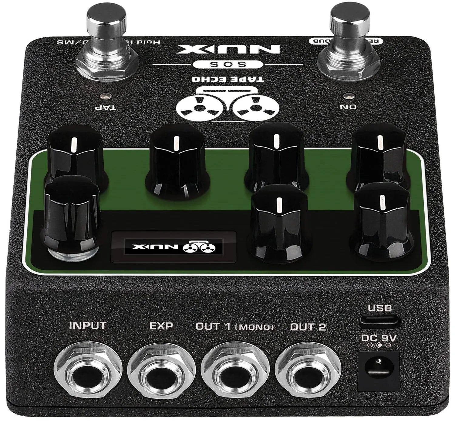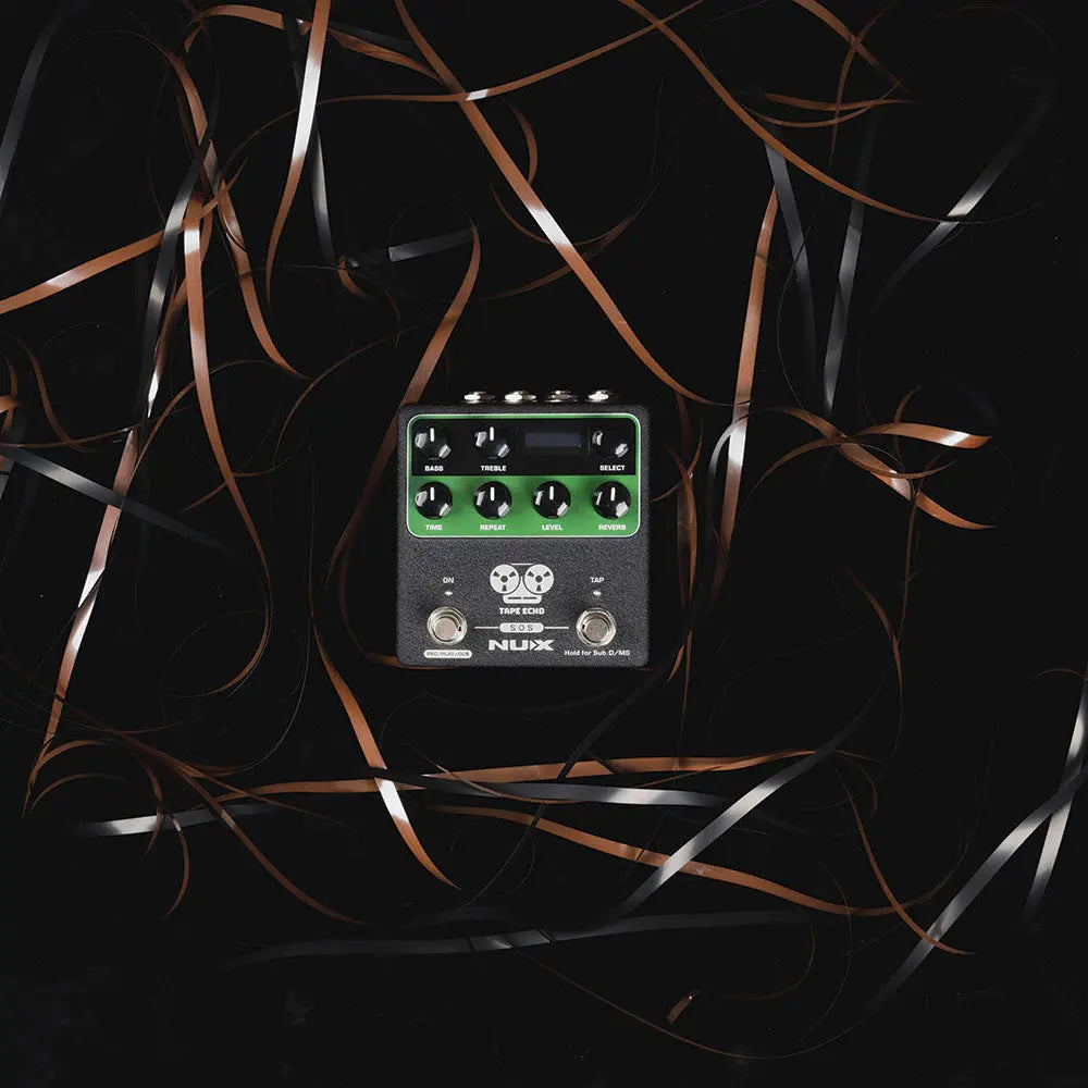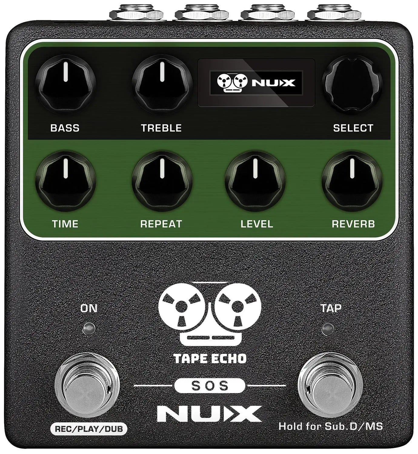 Tape Echo is an echo and delay processor with 7 different types of simulation to recreate the sound of vintage echo units. In addition to classic tape echo simulation, the NDD-7 has a separate spring reverb effect, sound-on-sound (SOS) for operation as a 40 second looper, and up to 1600ms of delay. For authenticity, the NDD-7 also has Wow & Flutter settings and Saturation adds natural compression and degradation, which can even drive into self-oscillation, like a true tape echo. Two foot switches operate as effect on/off and tap tempo and they double as looper and display controls. Above the foot switches are Time, Repeat, Level and Reverb controls and 2-band EQ governs the tone of repeats. USB connectivity and MIDI compatibility give further possibilities for deep control and integration with DAW and project studio setups. A full vintage echo collection in a single compact pedal for those seeking the genuine retro echo sound.