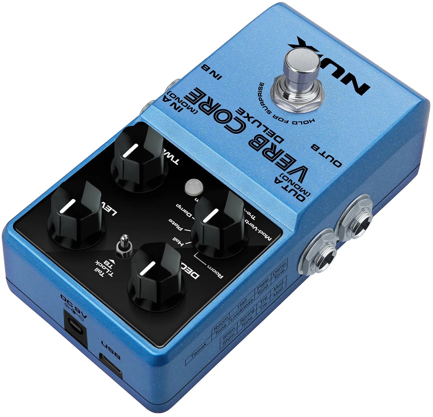 Verb Core Deluxe offers 8 different reverb effects in a single, straightforward stomp box format. A selection of classic and contemporary reverb types are available, with new features such as buffered tail bypass and kill dry functions. Each reverb type has adjustable Decay, Level and Tweak, which affects a different parameter depending upon the delay type selected. The dry signal follows an all-analog signal path, keeping the signal pure and helping to avoid unwanted noise. If you need a reverb on your pedal board, this could be the answer to all your needs.