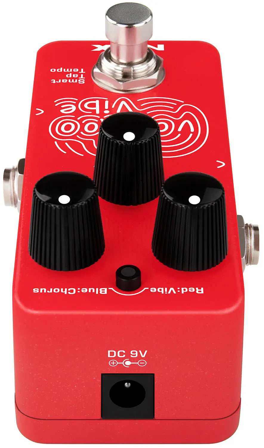 Voodoo Vibe is a mini guitar effect pedal that is recreates the rotating speaker effects produced by the classic uni vibe pedals used by famous guitarists from the 60's to the present day. Controls for Speed, Intensity and Volume give a wide range of adjustment to home in on the perfect vibe effect. An illuminated mini push button above the rotary controls can switch between a classic psychedelic vibe effect or a more chorus-type effect. Holding this button down during power-up selects between mono output or stereo output, which requires a stereo jack lead. Pressing the footswitch engages or disengages the effect. The smart tap tempo feature means that the pedal recognises pressing the footswitch twice or in a short space of time and responds to the timing as a tap tempo function. Perfect for trippy arpeggios and ethereal chord work.