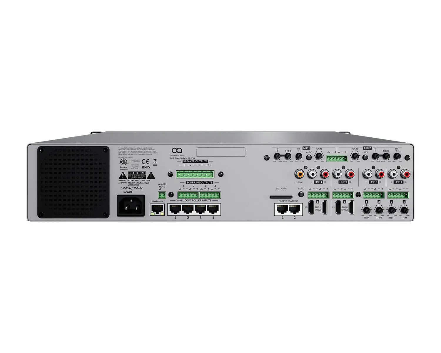 Integrated Amplification: Includes 4 channels of integrated amplification, eliminating the need for separate amplifiers for most small to medium applications.